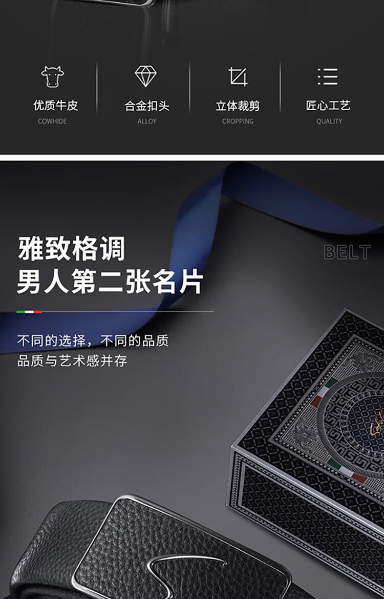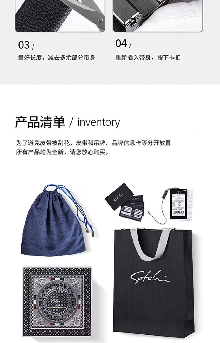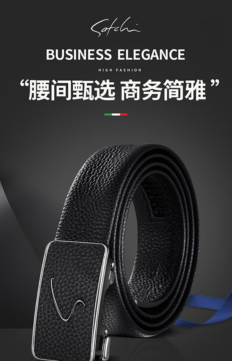 SATCHI men's belt business automatic buckle belt gift box first layer cowhide gift box birthday gift 115