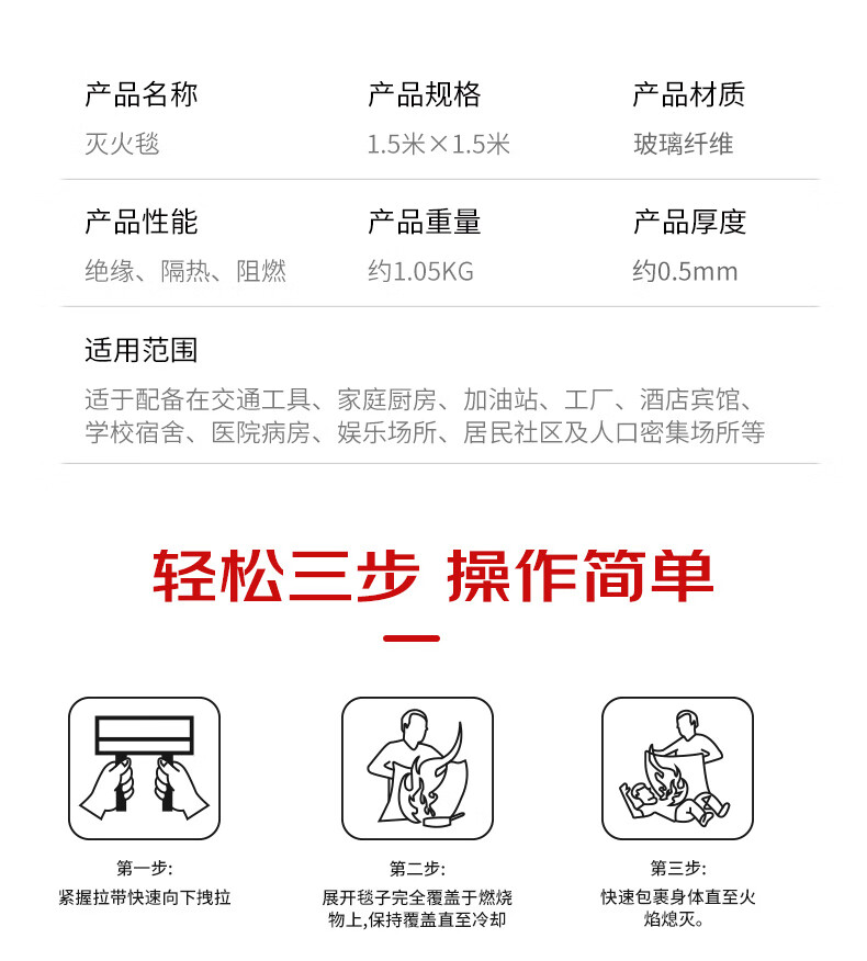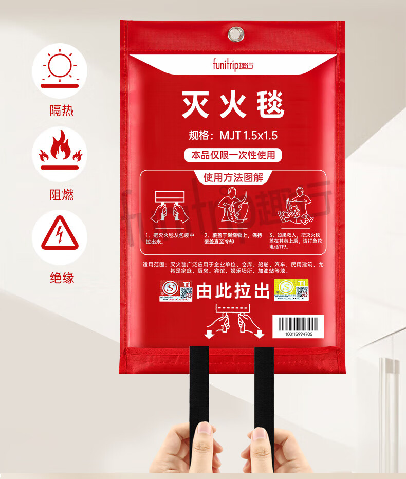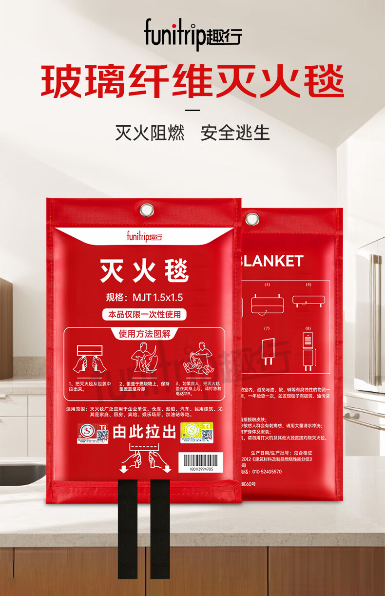 Quxing fire blanket fire blanket commercial kitchen household national fire certification fiberglass escape blanket 1.5*1.5 meters