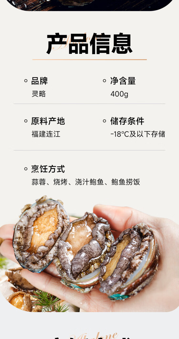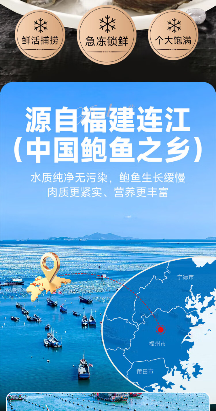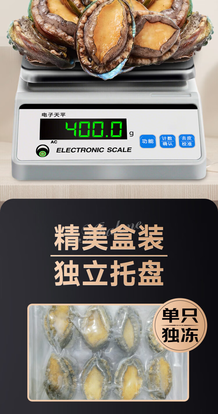 Linglue Fujian fresh frozen large abalone, net weight 400g, 8 pieces box, abalone hot pot barbecue, shellfish and seafood, fresh
