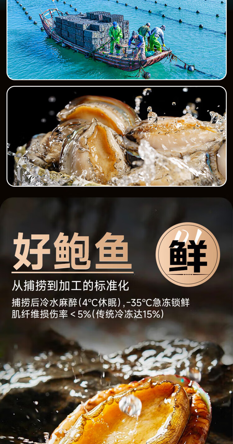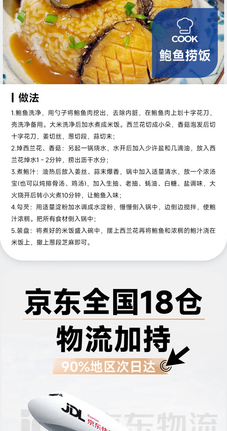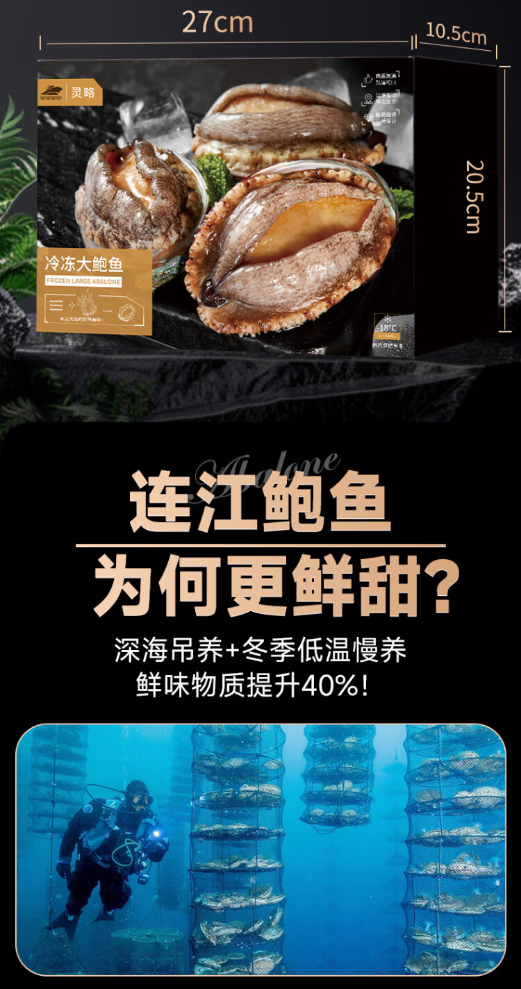 Linglue Fujian fresh frozen large abalone, net weight 400g, 8 pieces box, abalone hot pot barbecue, shellfish and seafood, fresh