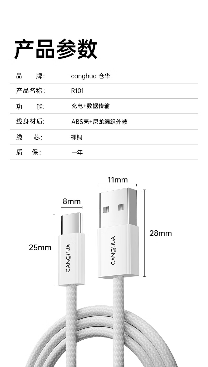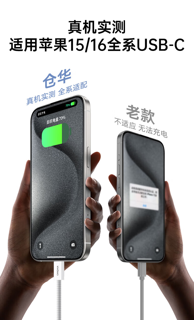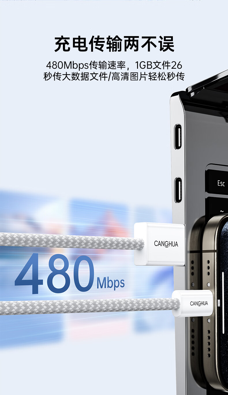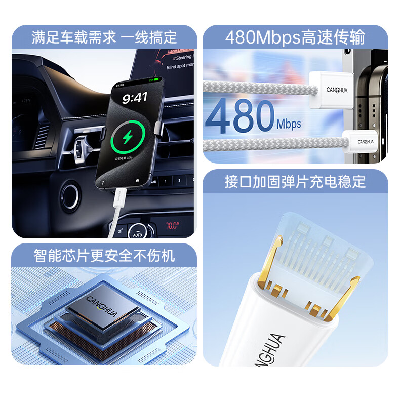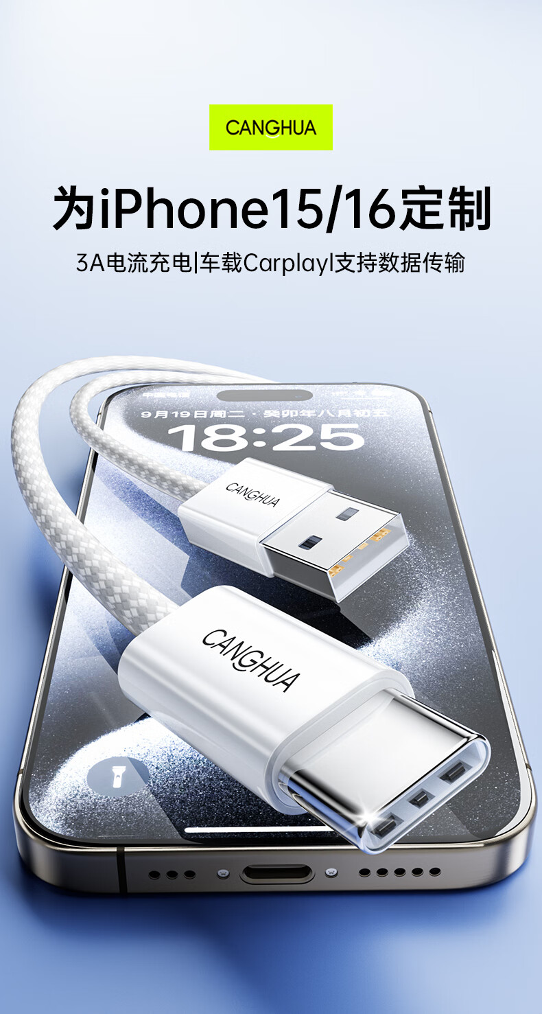 CangHua is suitable for Apple 17/16/15 charging cable USB to Type-C data cable car CarPlay cable iPhone 17/16e/15ProMax Huawei Honor fast charging cable 1 meter