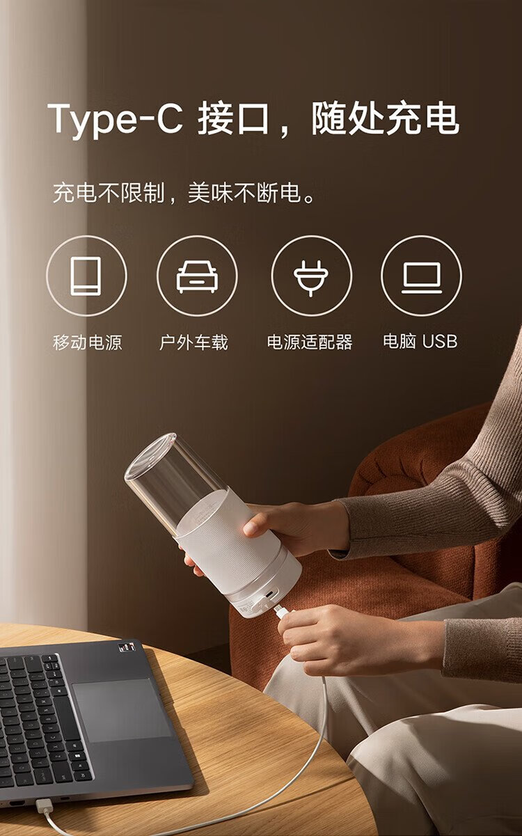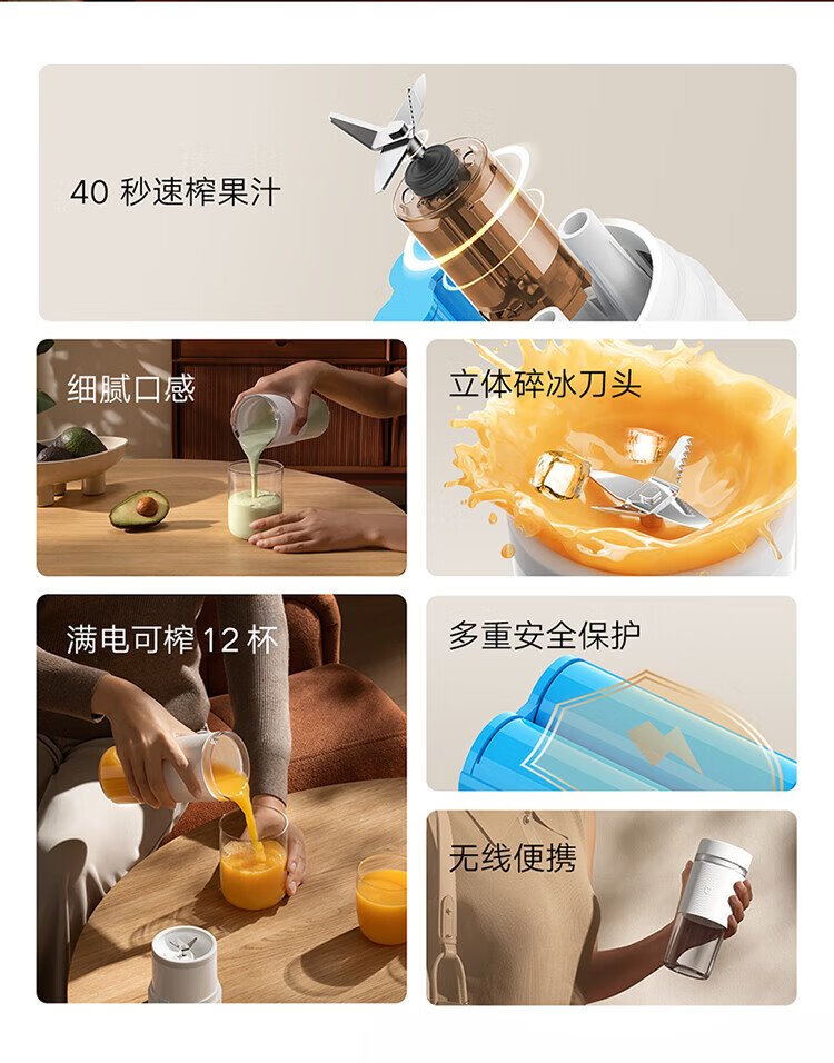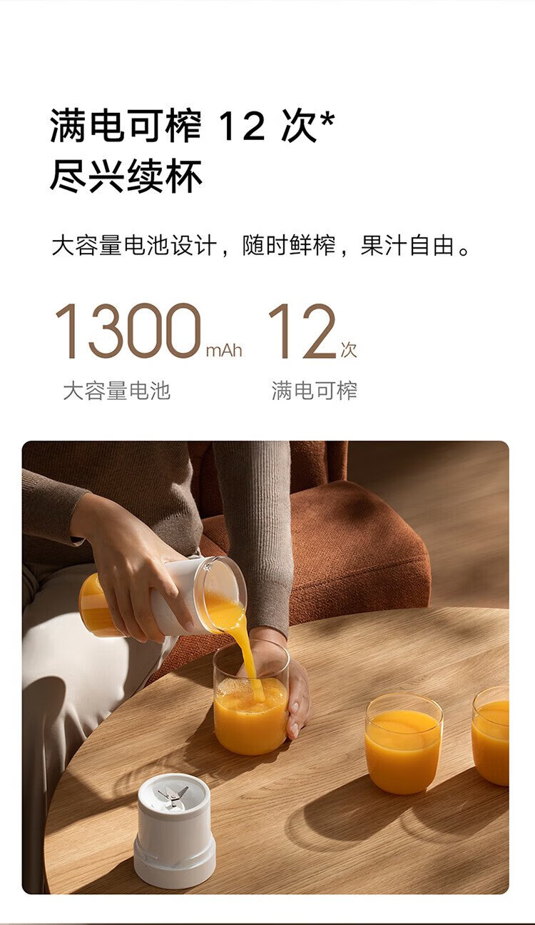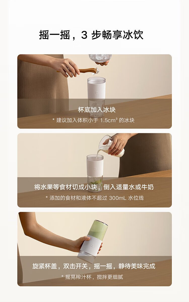 Mijia Xiaomi Juicing Cup 2 Electric Juicer Juice Machine Blending Cup Children's Infant Food Complementary Machine Small Portable Household Multi-Function Automatic Cleaning 304 Stainless Steel Ice Crusher