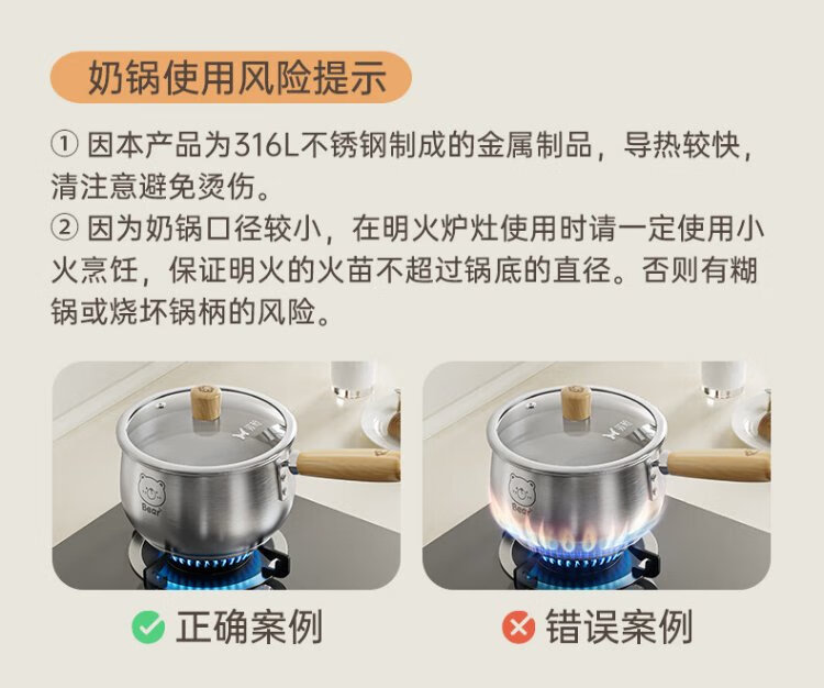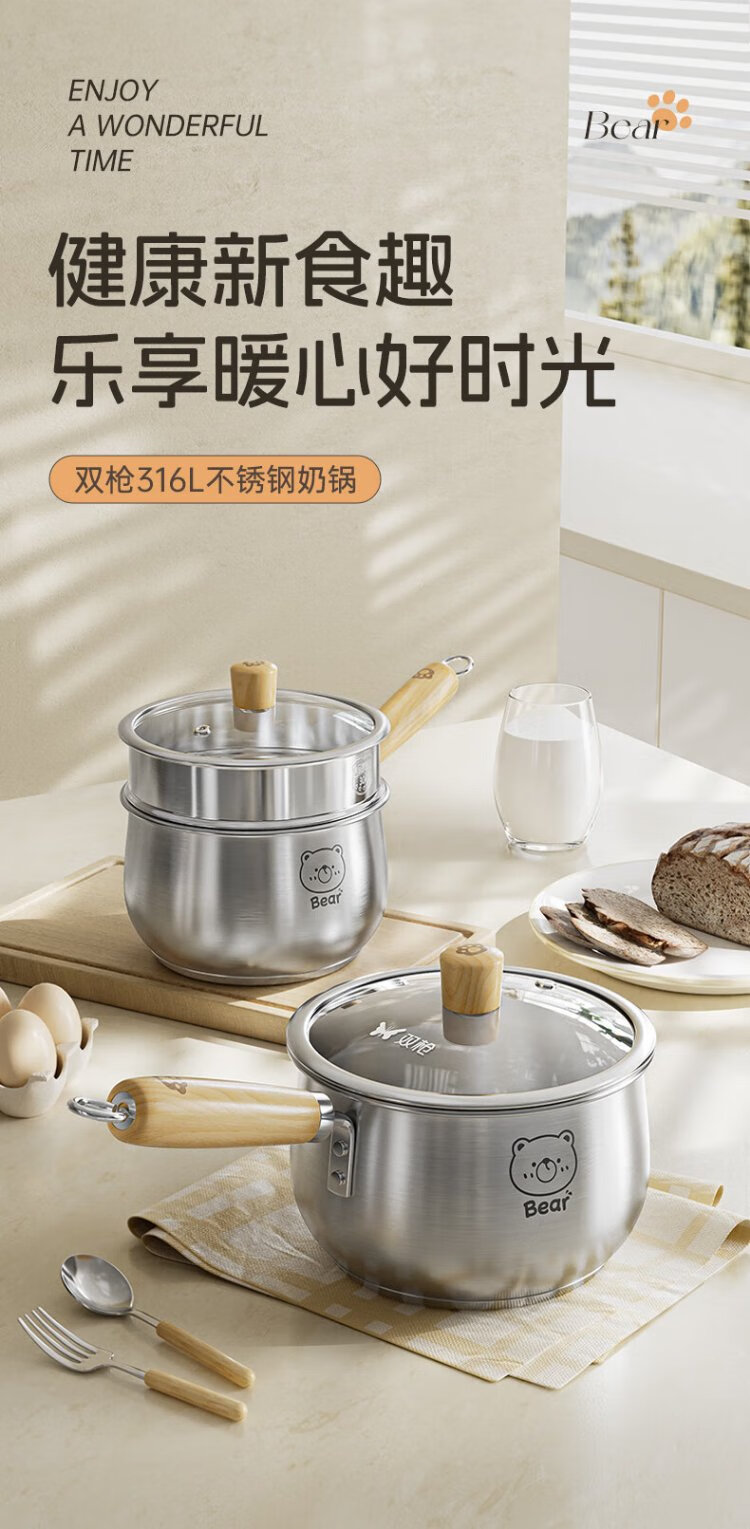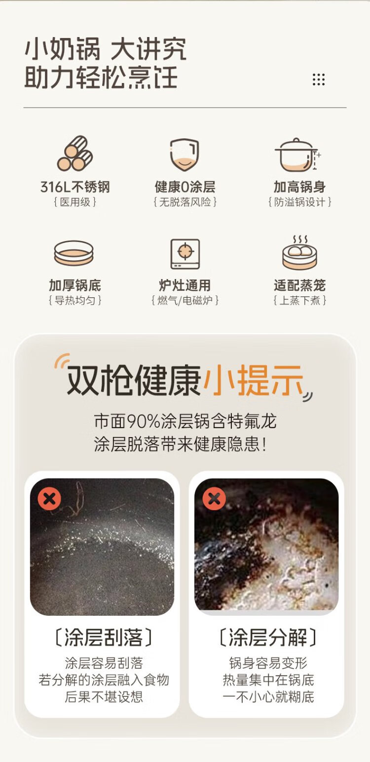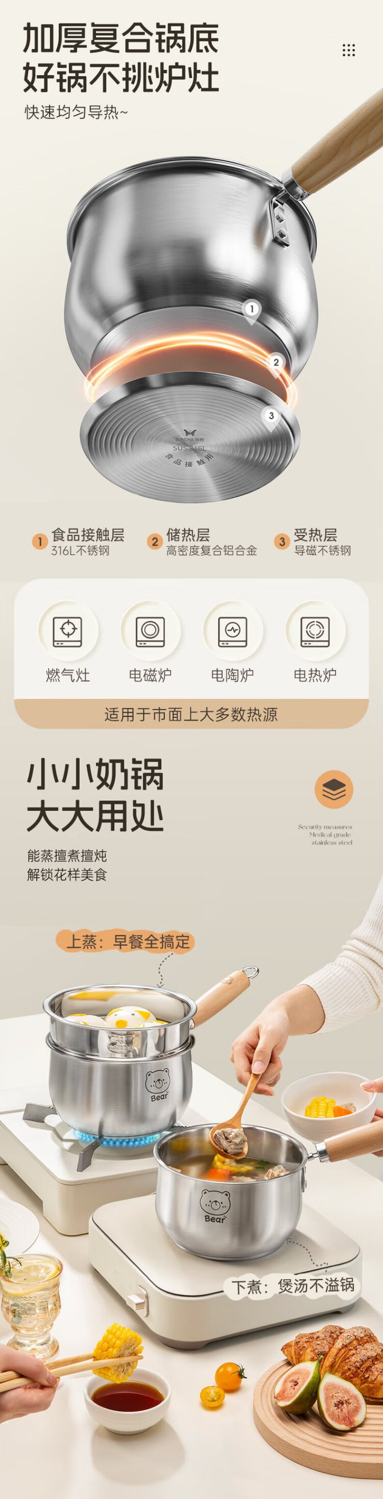 Suncha milk pot 316L stainless steel baby food supplement small milk pot soup pot snow flat steamer thickened with steamer 18cm