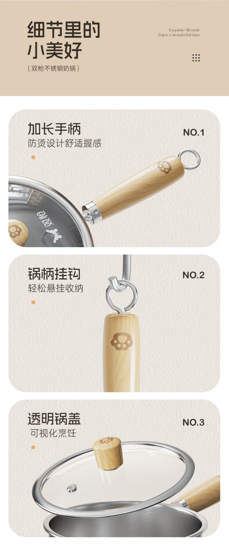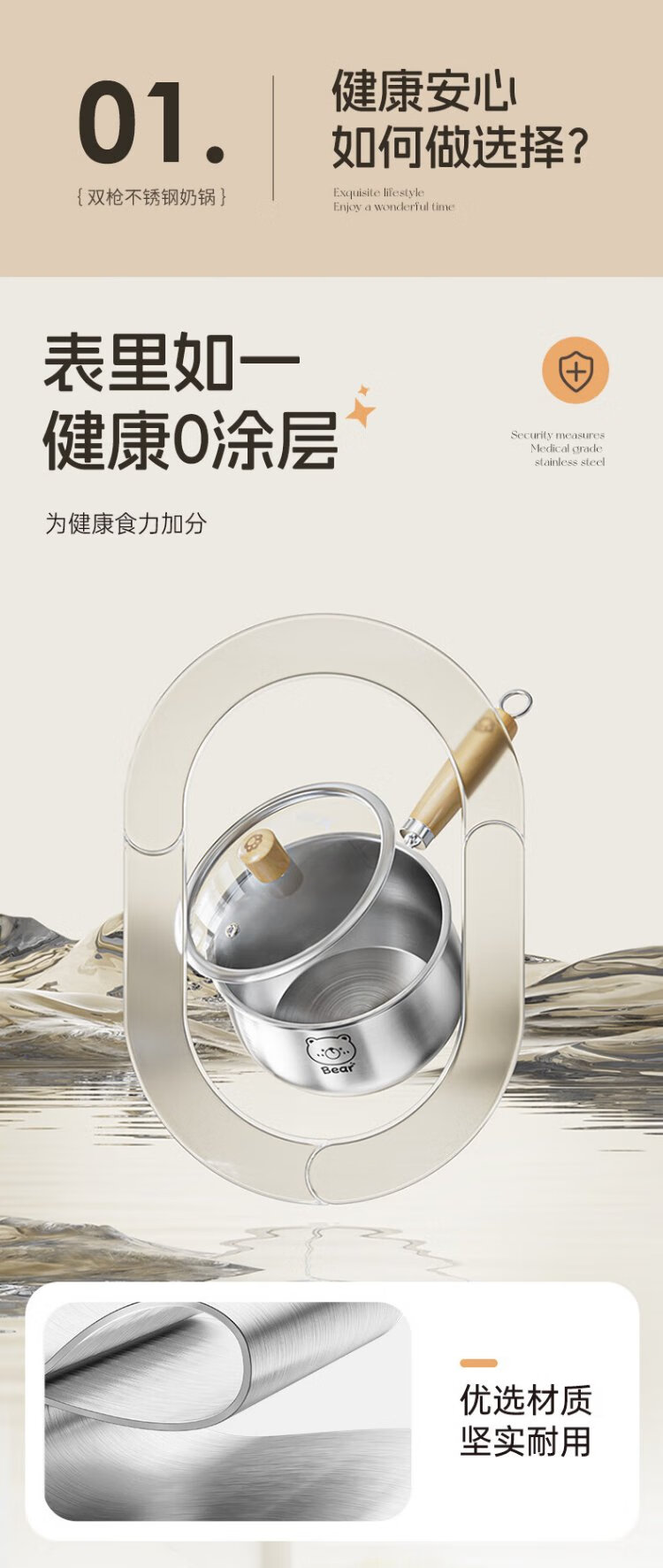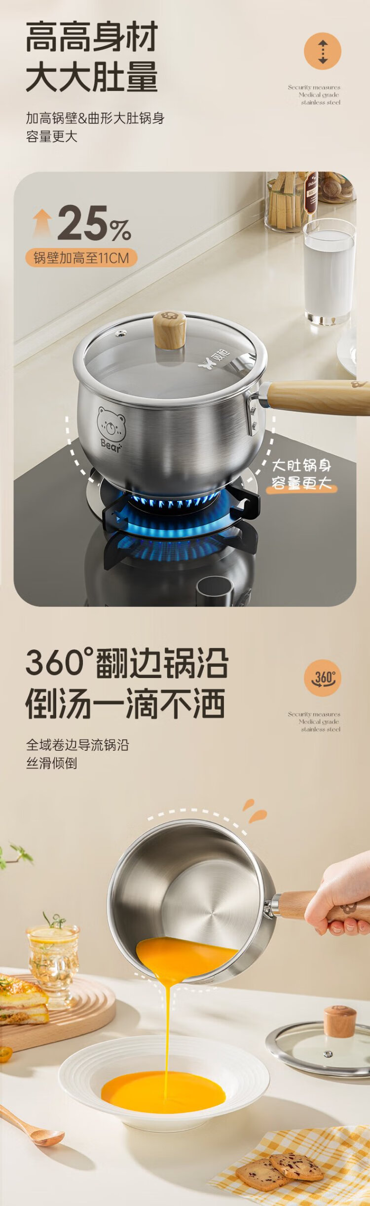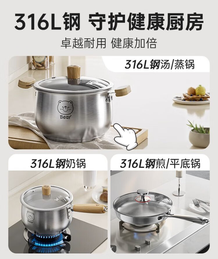 Suncha milk pot 316L stainless steel baby food supplement small milk pot soup pot snow flat steamer thickened with steamer 18cm