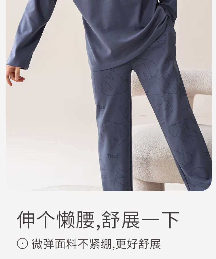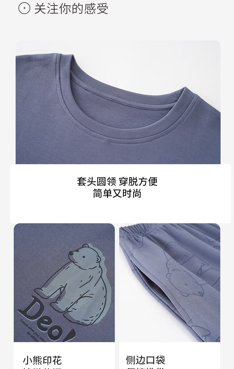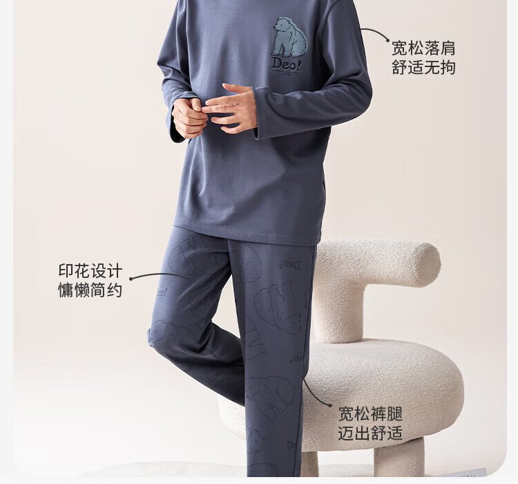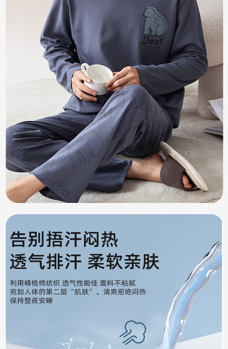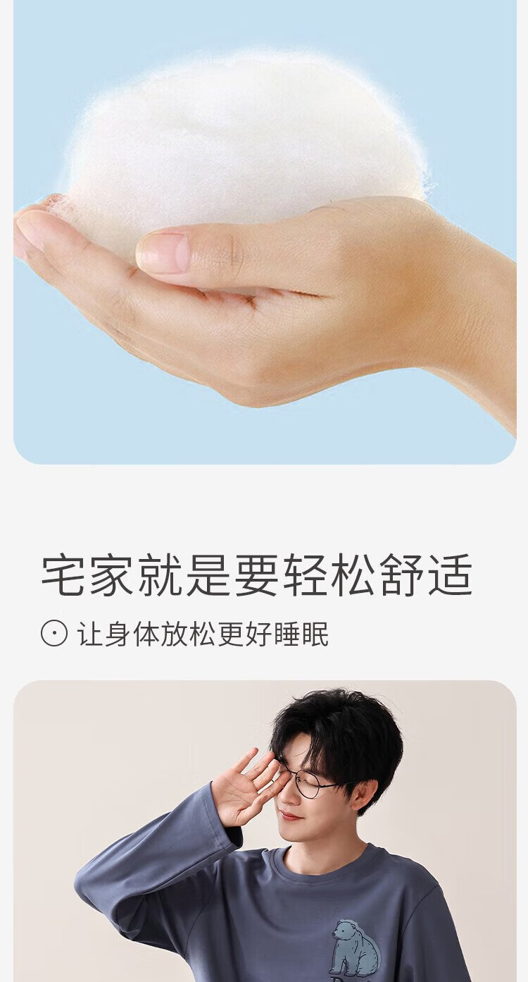 Catman men's pajamas for men, pure cotton antibacterial and anti-mite, fashionable loose long-sleeved pullover home wear blue 2XL