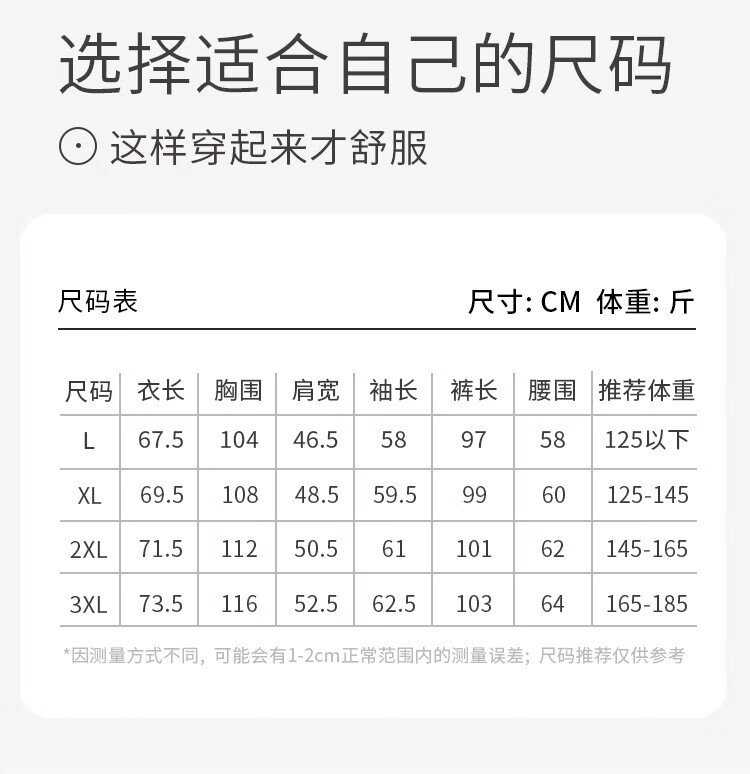 China (cm) 165 / 88-90 170 / 96-98 175 / 108-110 180 / 118-122 185 / 126-130