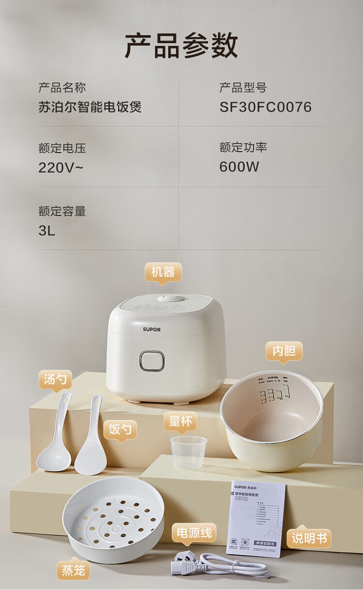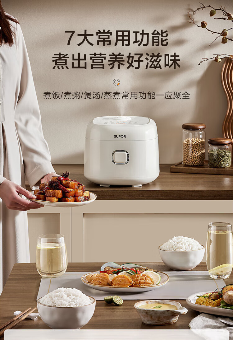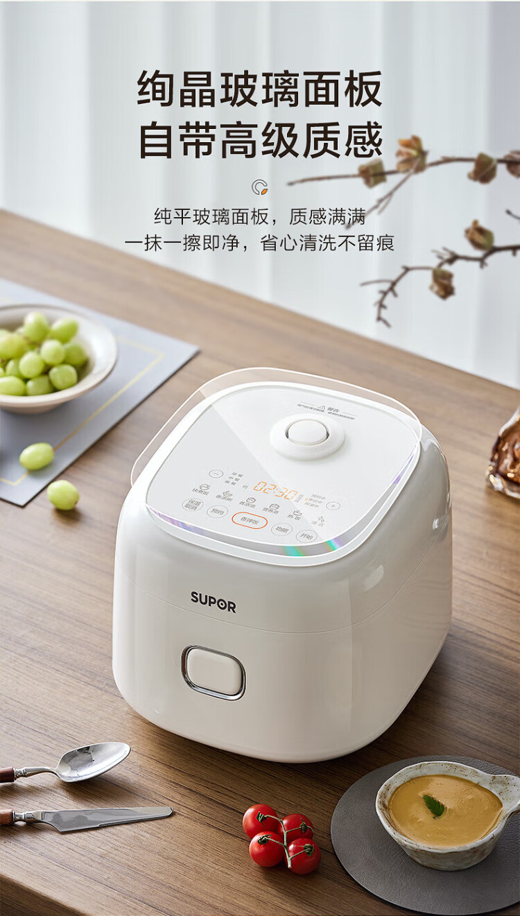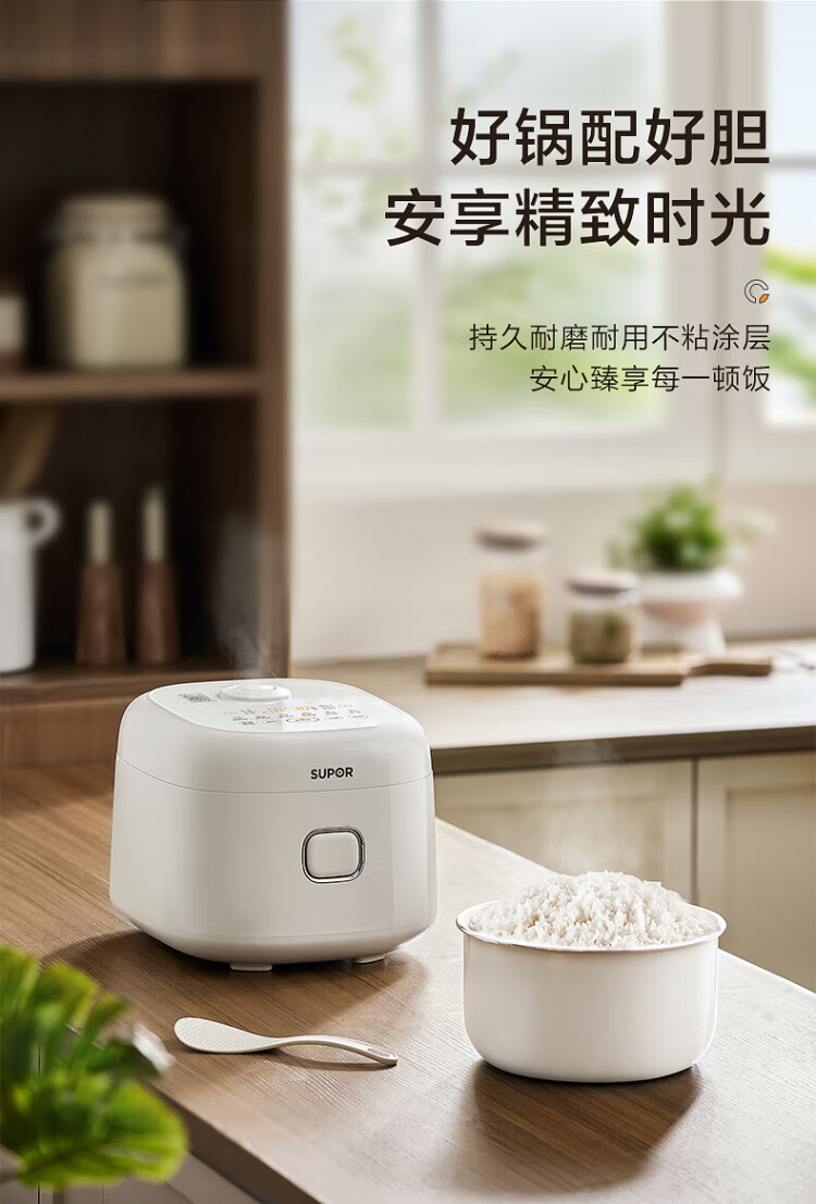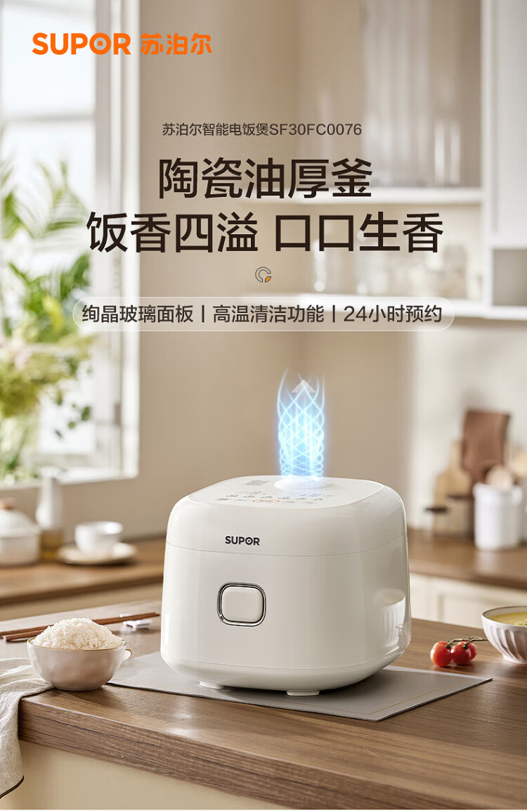 SUPOR small rice cooker for 2-3 people, 3-liter ceramic non-stick inner pot, household electric cooking pot, soup and porridge pot, smart reservation, multi-function, one-pot, multi-purpose micro-pressure rice cooker SF30FC0076