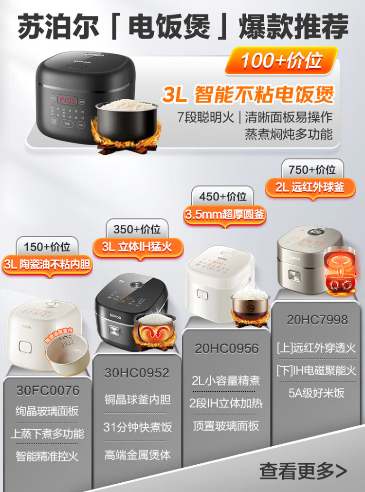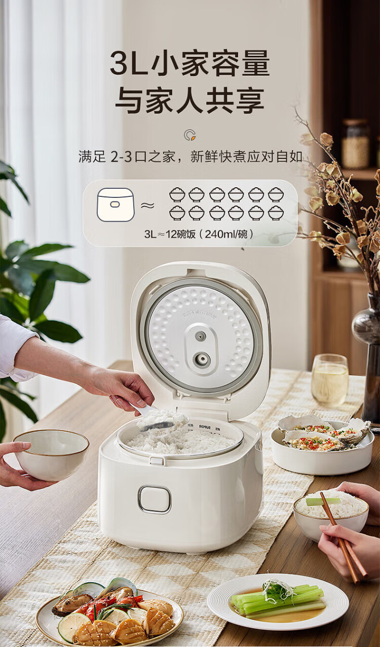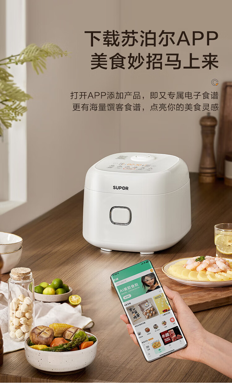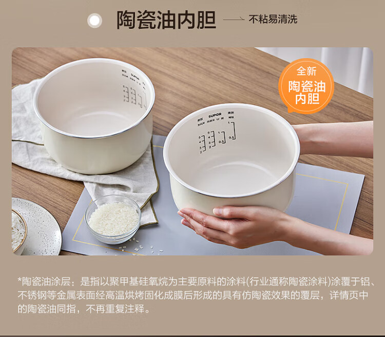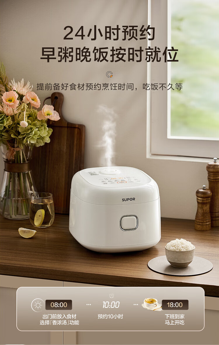 SUPOR small rice cooker for 2-3 people, 3-liter ceramic non-stick inner pot, household electric cooking pot, soup and porridge pot, smart reservation, multi-function, one-pot, multi-purpose micro-pressure rice cooker SF30FC0076