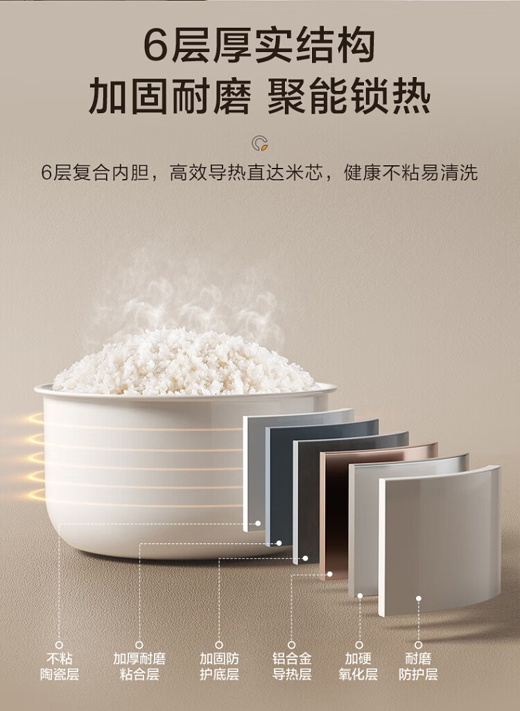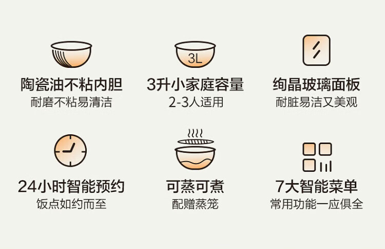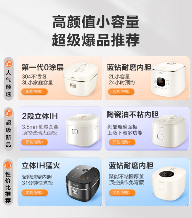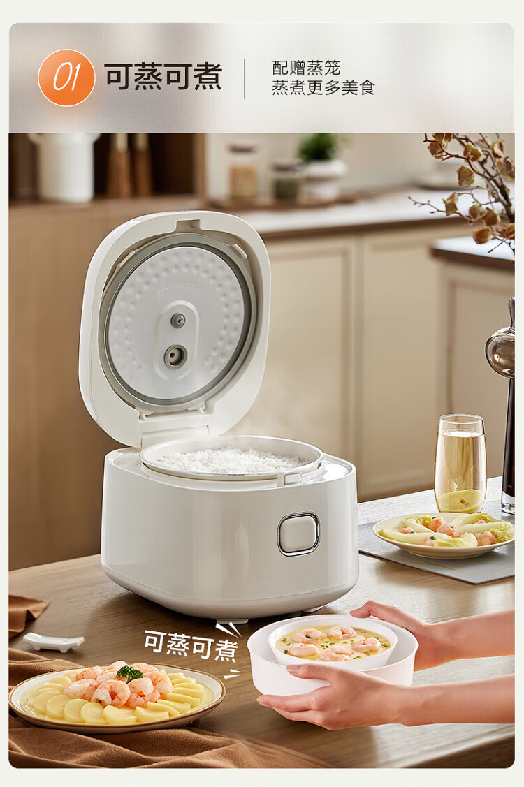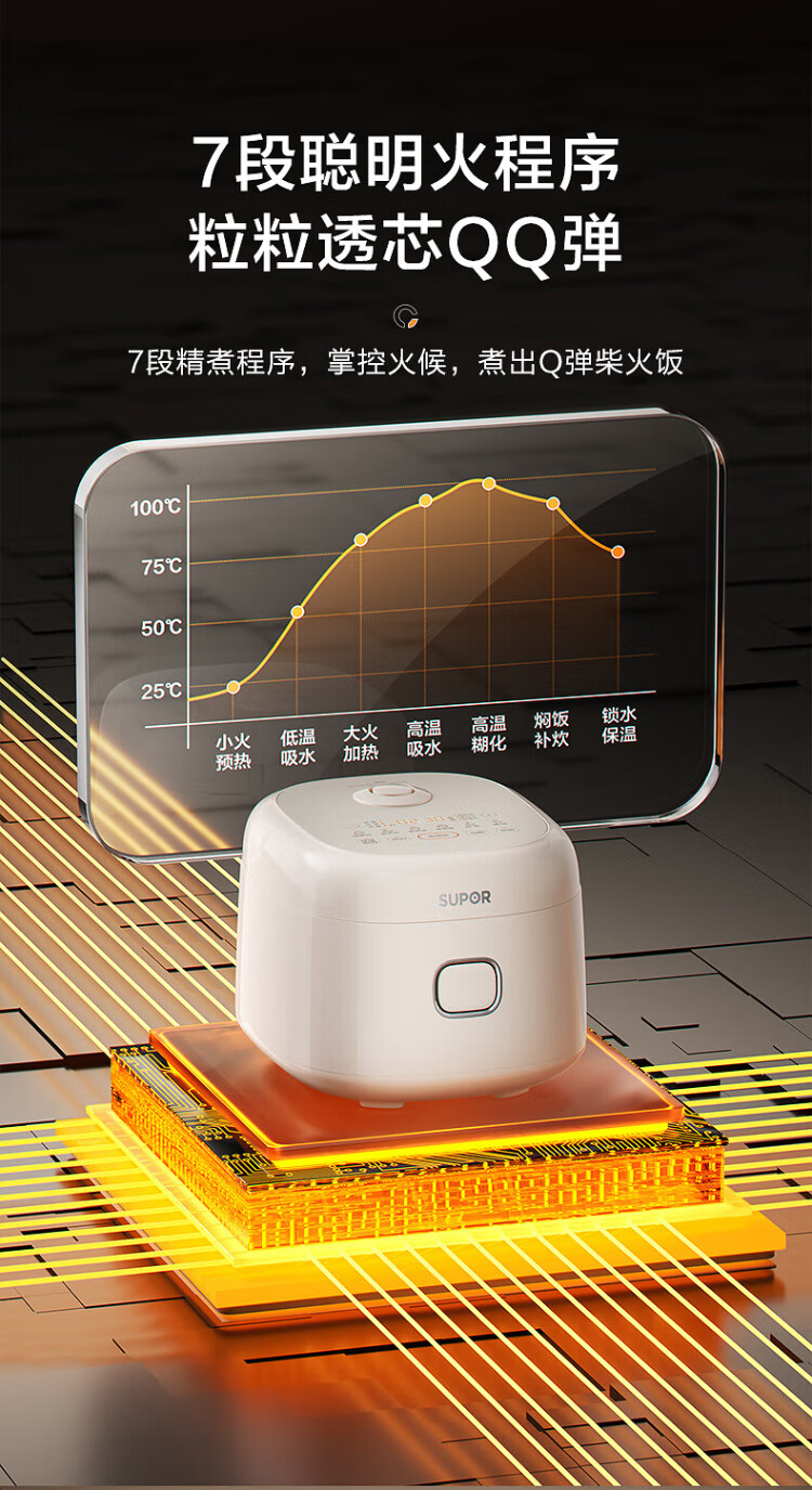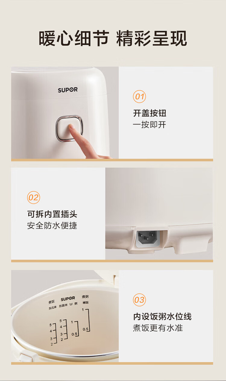 SUPOR small rice cooker for 2-3 people, 3-liter ceramic non-stick inner pot, household electric cooking pot, soup and porridge pot, smart reservation, multi-function, one-pot, multi-purpose micro-pressure rice cooker SF30FC0076