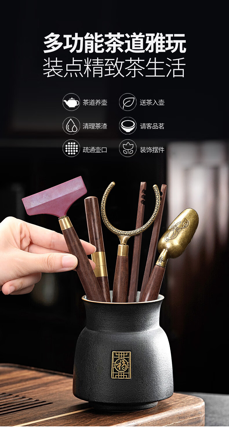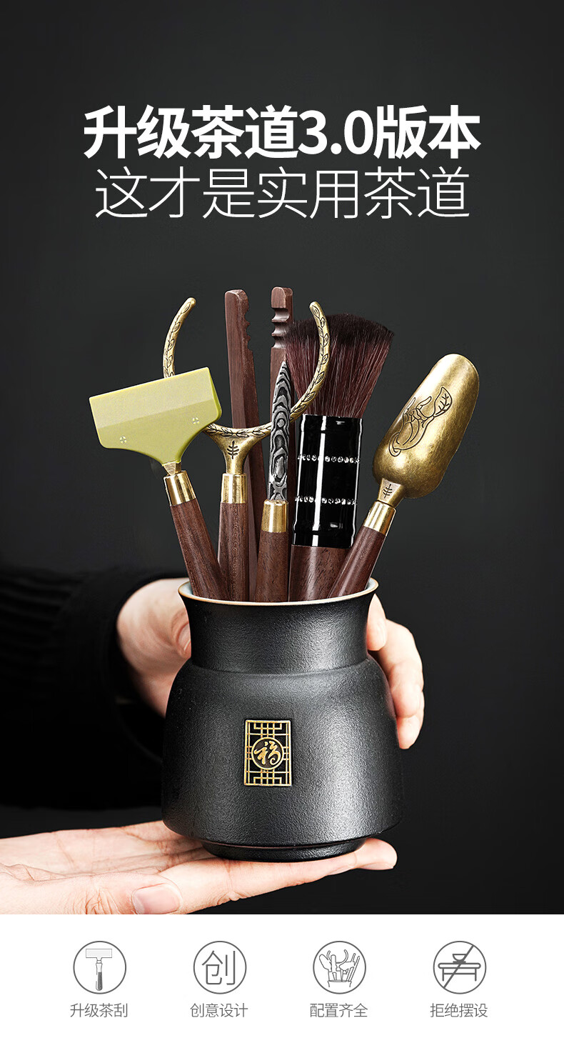 The Six Gentlemen of the Unclumsy Tea Ceremony Set Tea Art Ornaments Tea Accessories Tea Leak Filter Zen Black Six Gentlemen + Filter Set