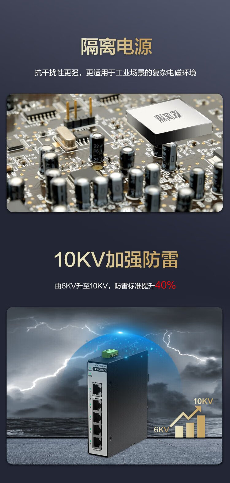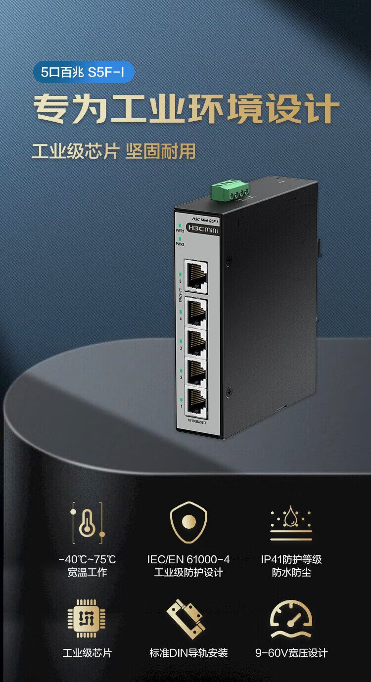 New H3C 5-port 100M industrial grade DIN rail switch Mini S5F-I lightning protection 10KV surveillance network splitter hub