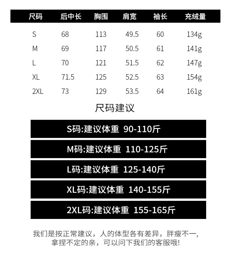 China (cm) 165 / 88-90 170 / 96-98 175 / 108-110 180 / 118-122 185 / 126-130
