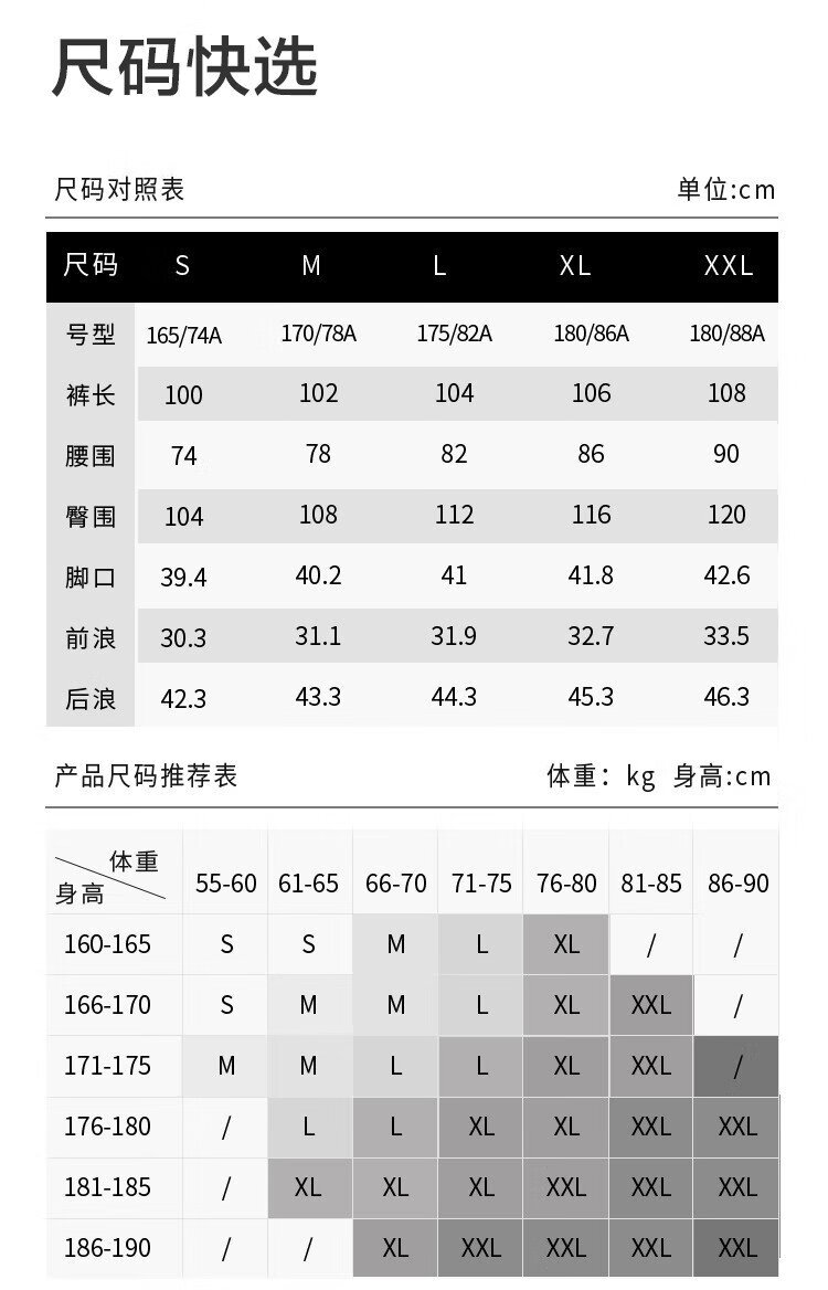 China (cm) 160-165/84-86 165-170 / 88-90 167-172 / 92-96 168-173 / 98-102 170-176 / 106-110