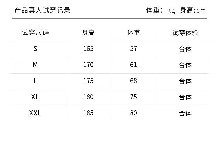 China (cm) 165 / 88-90 170 / 96-98 175 / 108-110 180 / 118-122 185 / 126-130