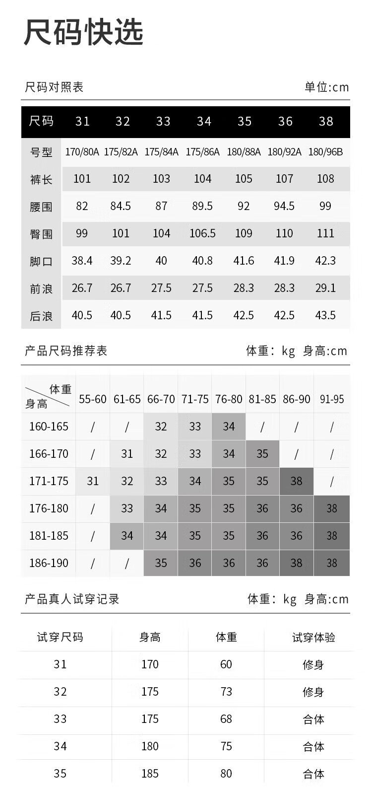 China (cm) 160-165/84-86 165-170 / 88-90 167-172 / 92-96 168-173 / 98-102 170-176 / 106-110