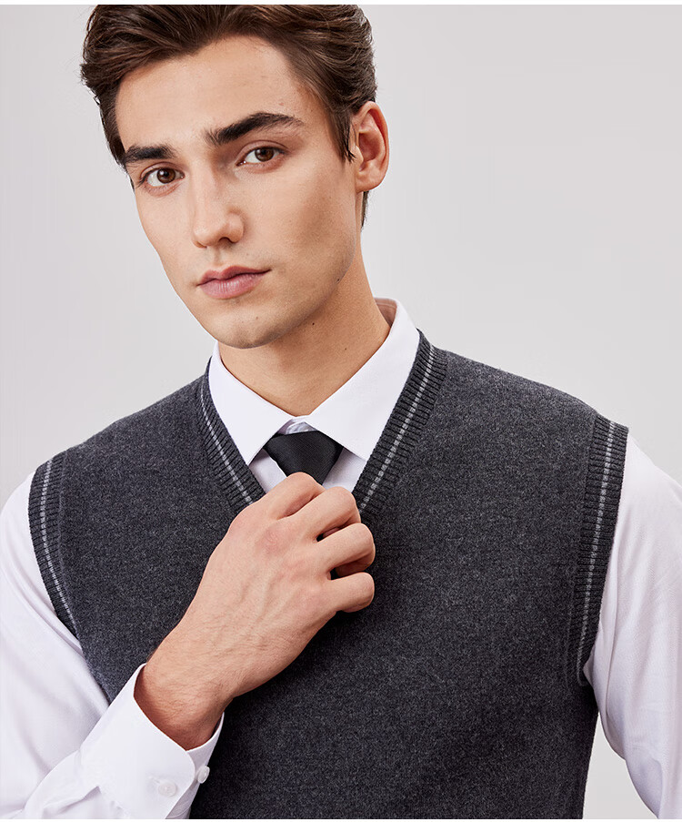 Shanshan 100% Australian wool sweater V-neck sleeveless heavyweight thickened skin-friendly soft bottoming shirt with sweater inside