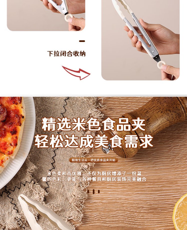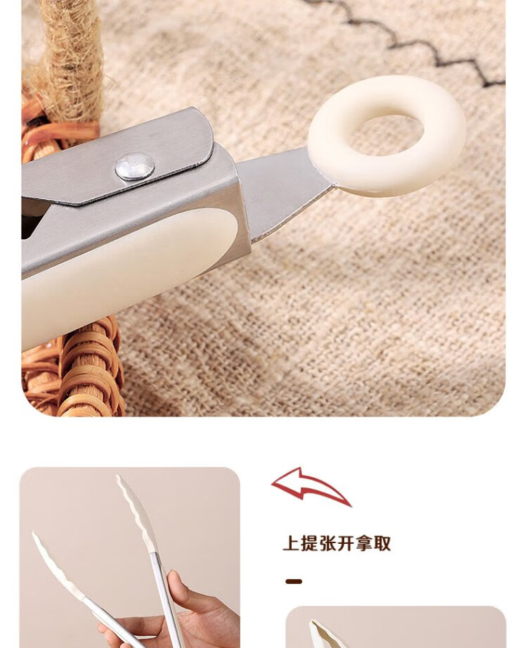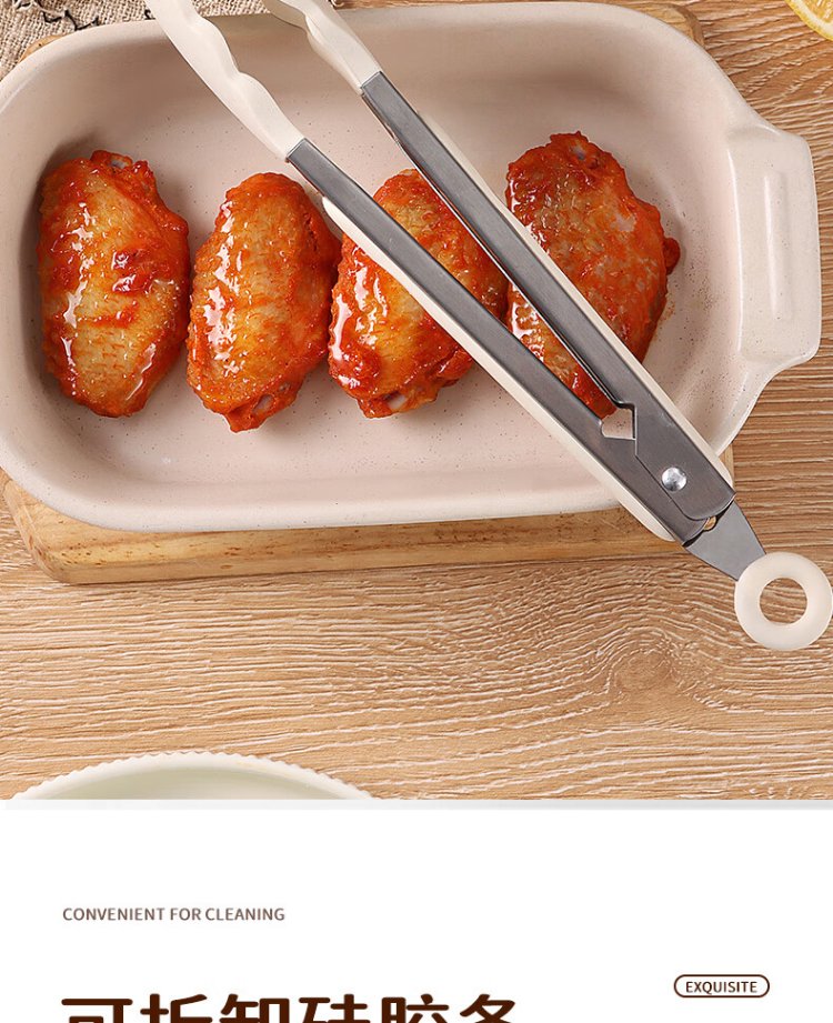 Baijie stainless steel silicone food clip steak clip barbecue clip kitchen fried steak clip barbecue clip