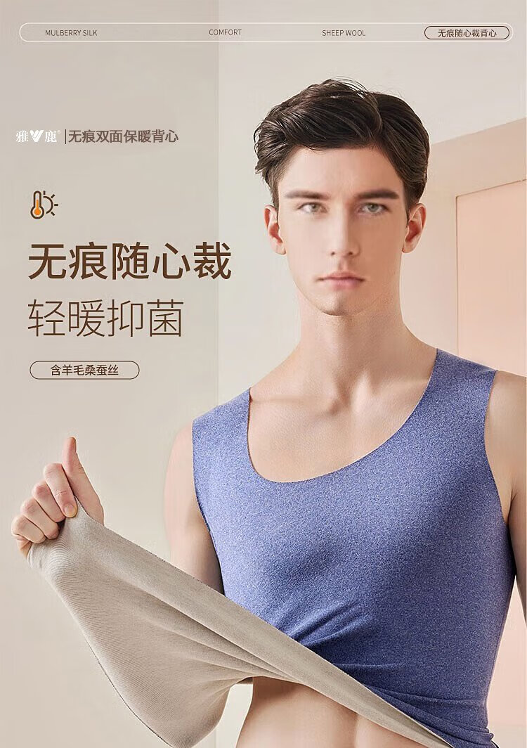 Yalu 2 pieces wool silk men's thermal vest men's autumn and winter bottoming shirt seamless sports cold-proof inner top
