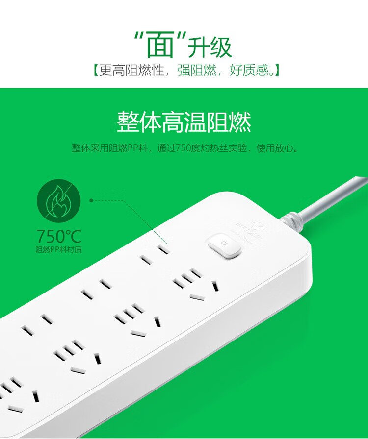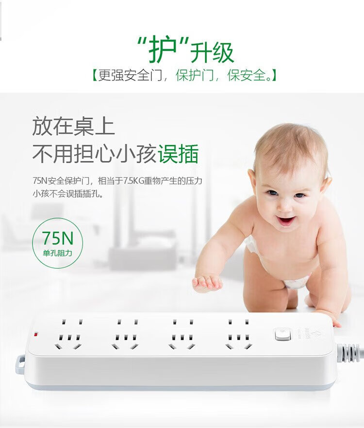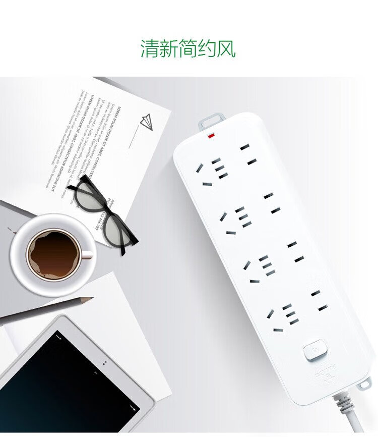 Bull socket strip strip 8-position master control total length 1.8 meters