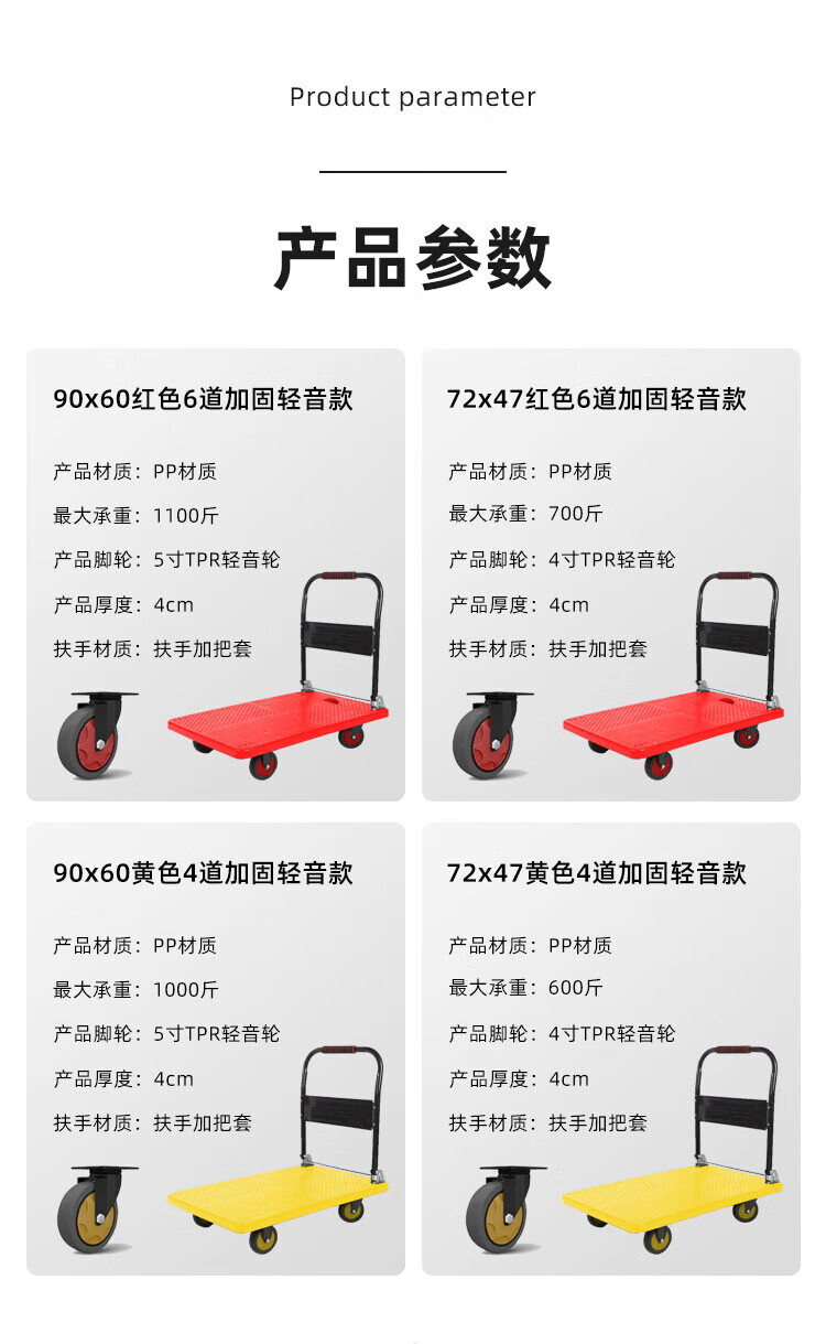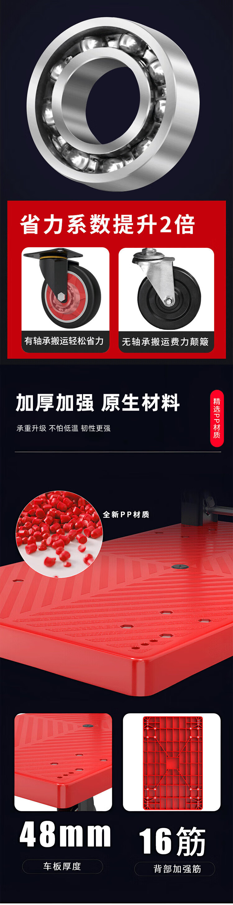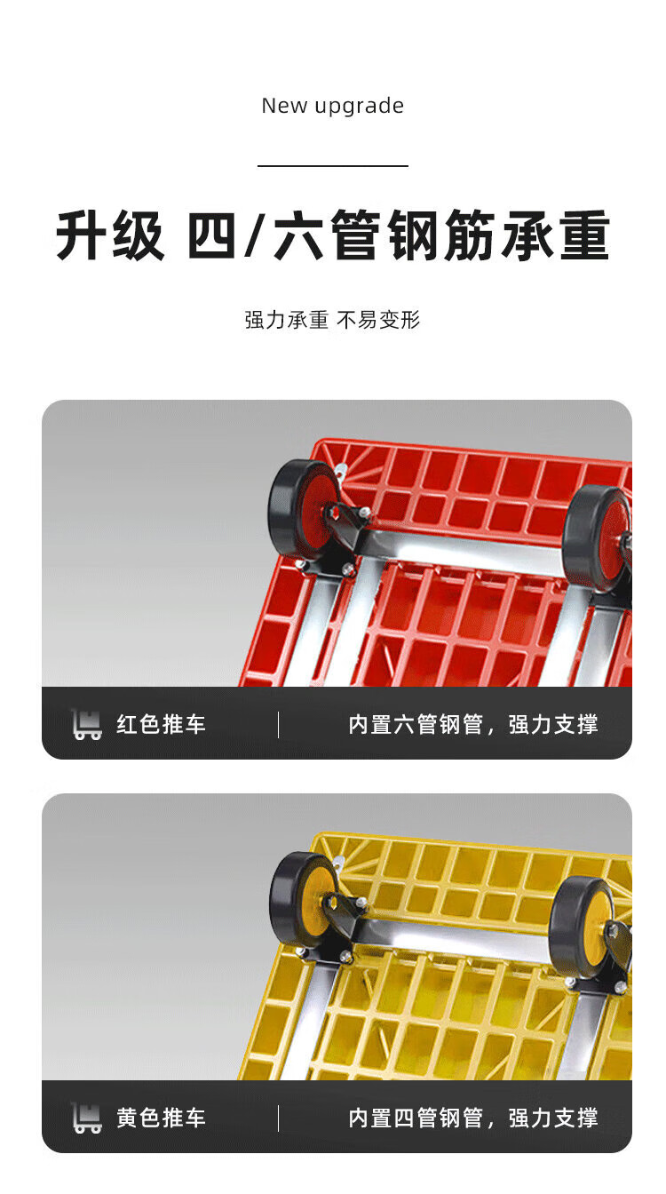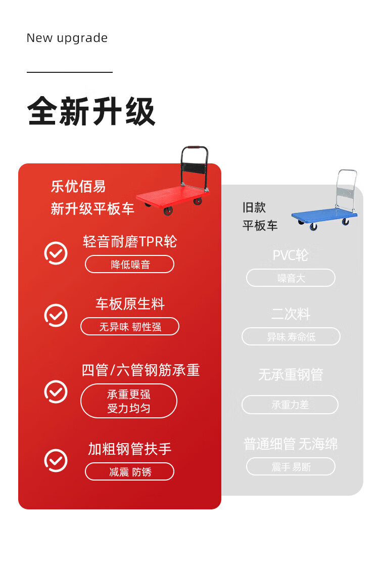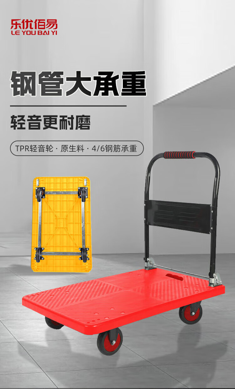 Leyou Baiyi small trolley flat trolley 90*60cm four-tube load-bearing decoration moving small trailer transport truck small puller driver pull truck pull truck folding trailer