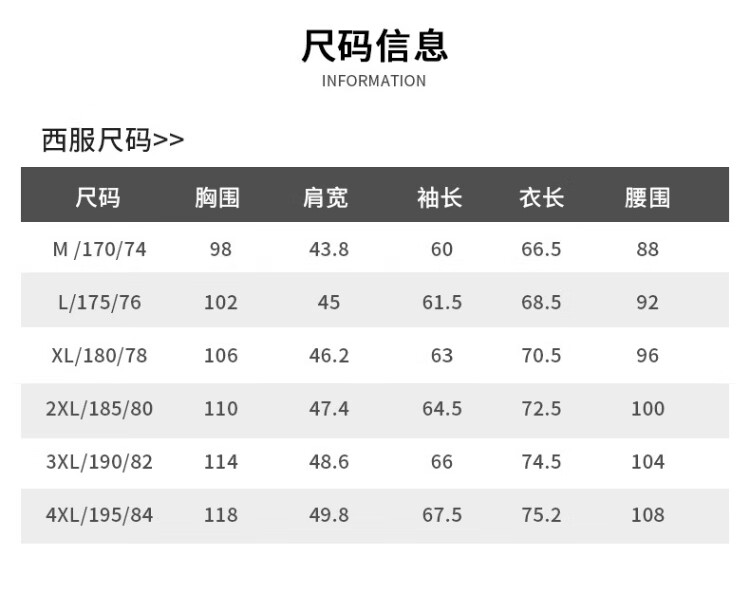 China (cm) 160-165/84-86 165-170 / 88-90 167-172 / 92-96 168-173 / 98-102 170-176 / 106-110