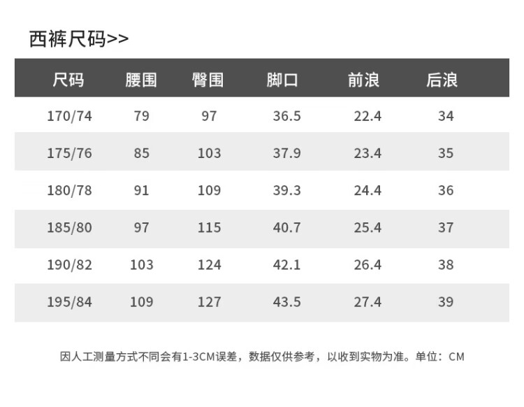 Outseam (cm) 99 cm 101.5 cm 104 cm 106.5 cm 109 cm