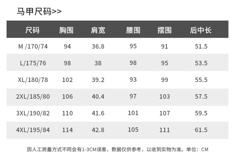 China (cm) 165 / 88-90 170 / 96-98 175 / 108-110 180 / 118-122 185 / 126-130