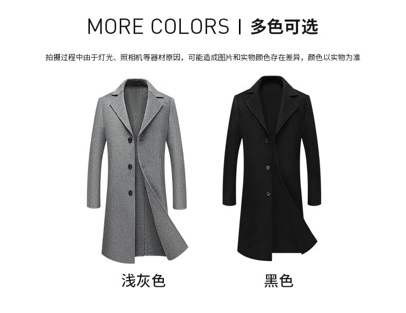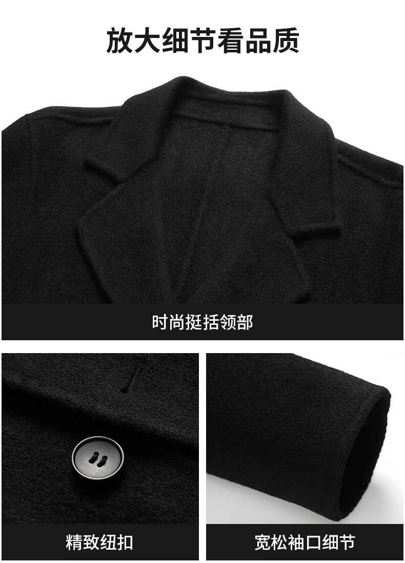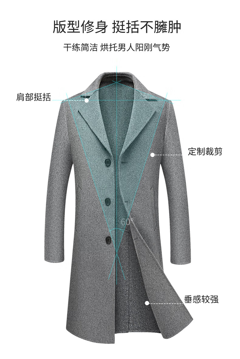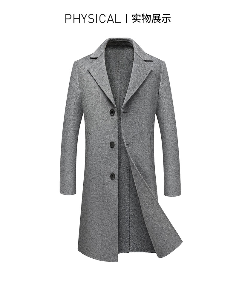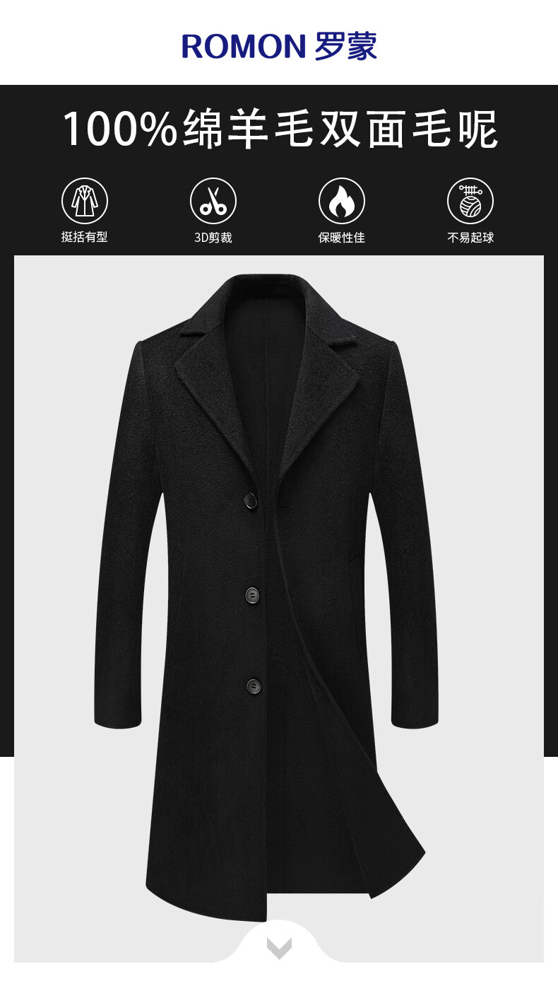 Romon 100% pure wool extended double-sided woolen coat men's autumn and winter woolen over-the-knee windbreaker jacket