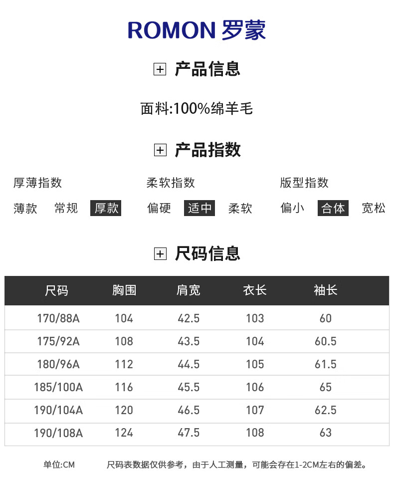 China (cm) 165 / 88-90 170 / 96-98 175 / 108-110 180 / 118-122 185 / 126-130