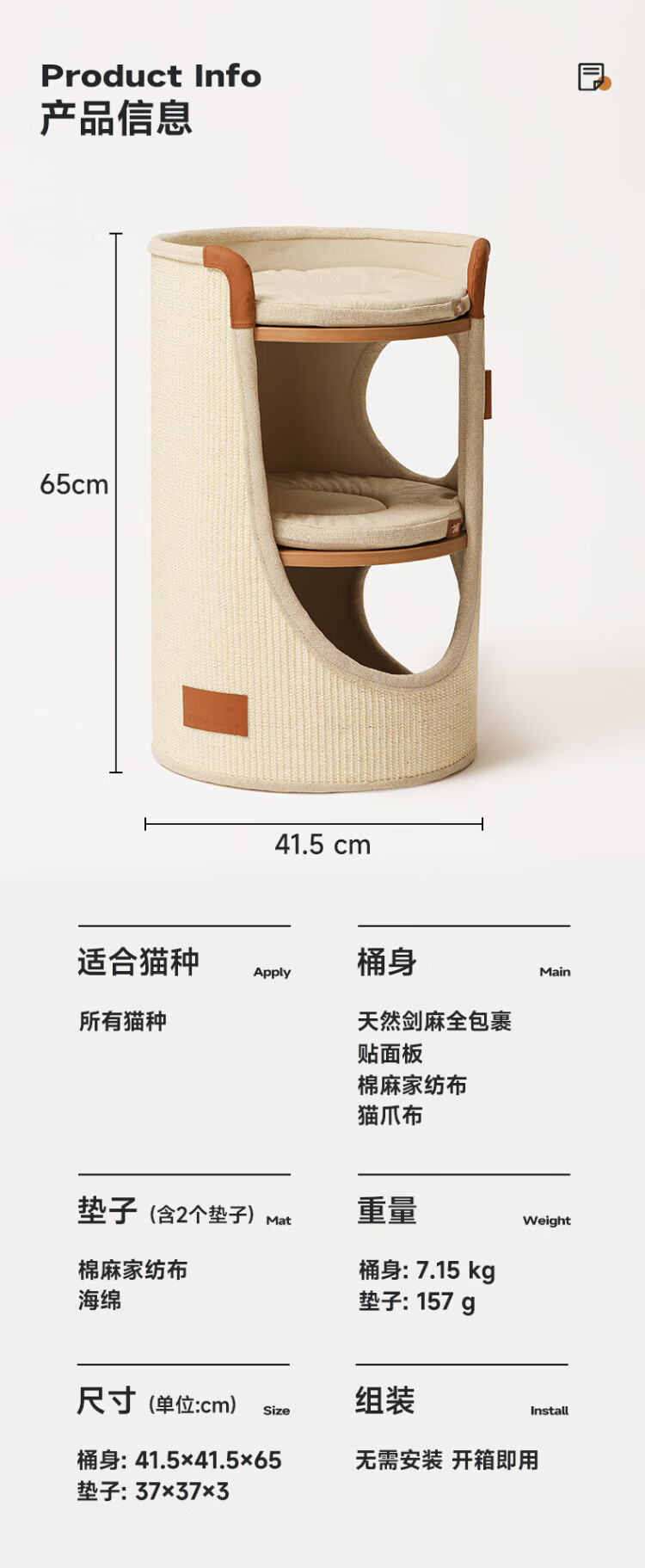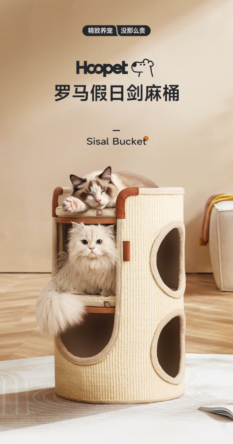 Huayuan pet equipment (hoopet) cat climbing frame, cat nest, cat scratching board, household small house, does not occupy a tree hole, integrated sisal bucket, formaldehyde 0 exceeds the standard