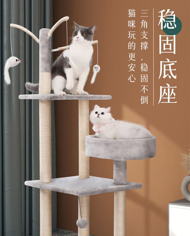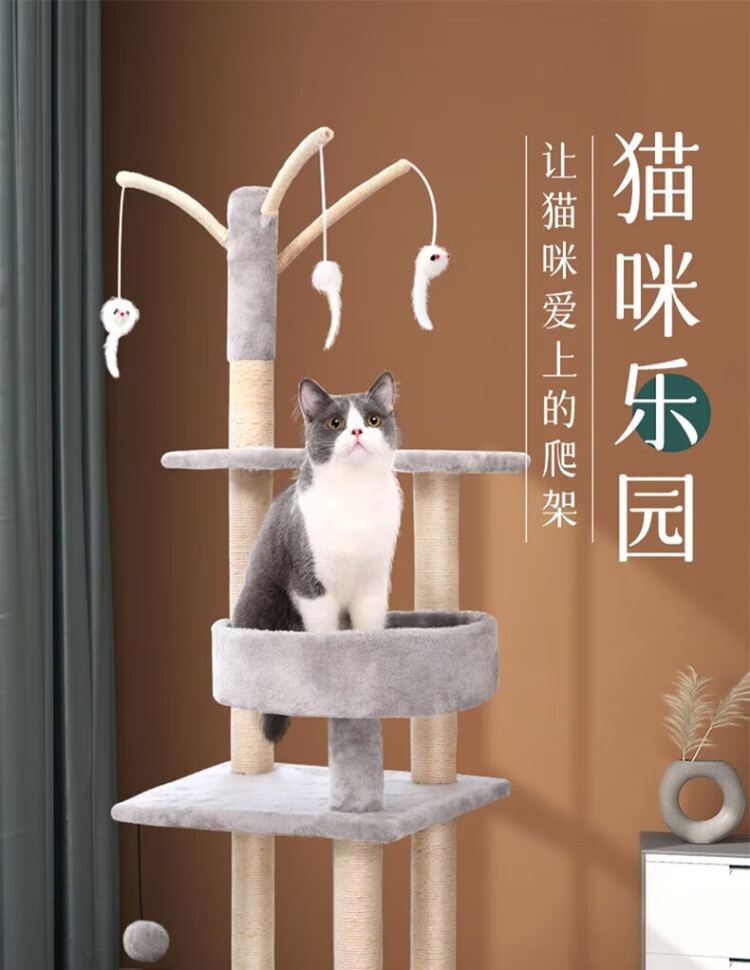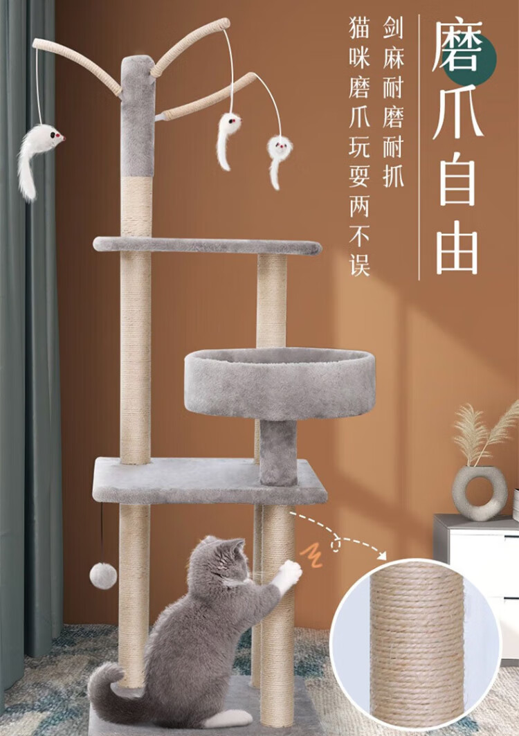 Huayuan pet (hoopet) cat climbing frame small apartment cat nest cat tree integrated medium sisal cat scratching post vertical cat shelf cat toy cat scratching board