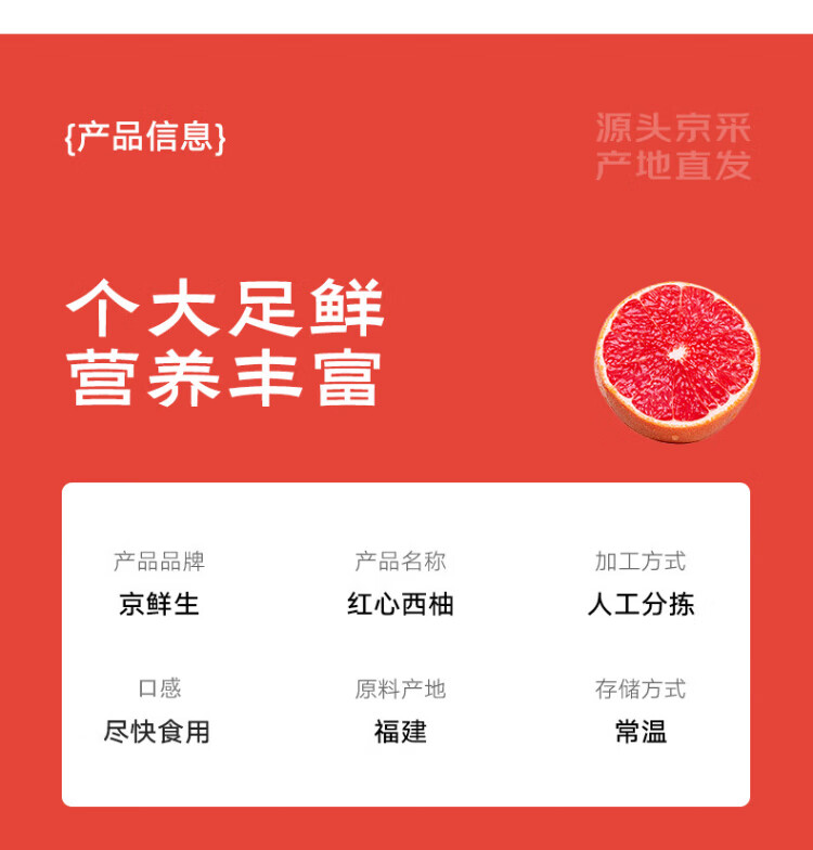 Jingxiansheng Fujian Guanxi Red Heart Honey Pomelo 2 pieces, net weight 4-5Jin Jin is equal to 0.5kg, single fruit 800g+, fruit straight from the source