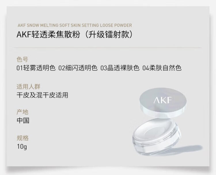 AKF Setting Loose Powder Oil Control Light Mist Transparent Concealer 01# Light Translucent Soft Focus Loose Powder 10g On Clearance