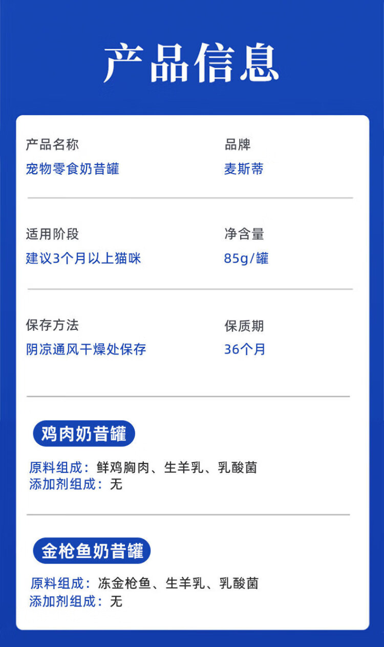 Canned chicken and goat's milk milkshake 85g*24 cans for cats, nutritional snacks for adult and young cats, weight gain, wet food and hydration