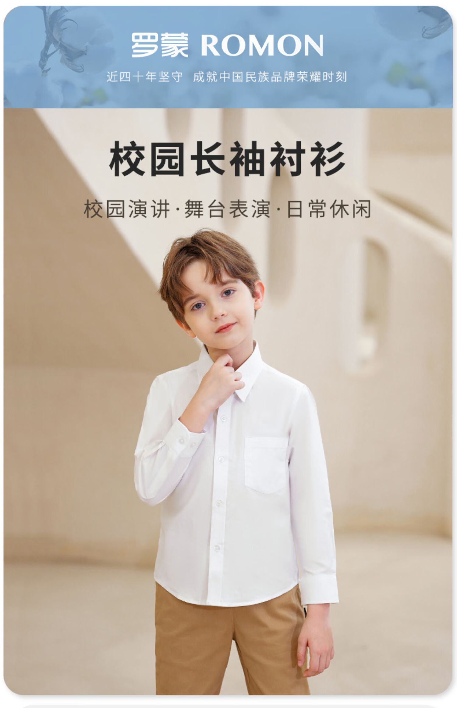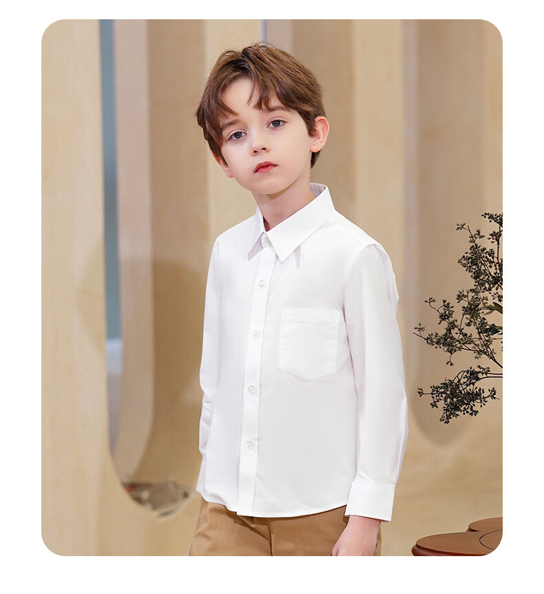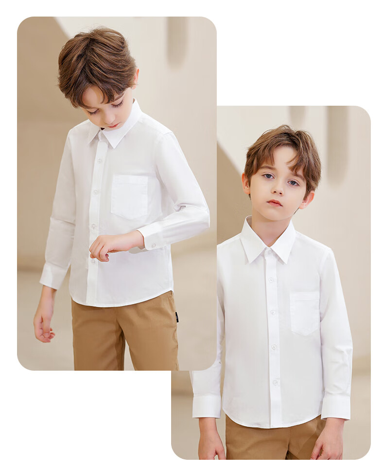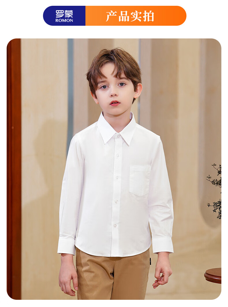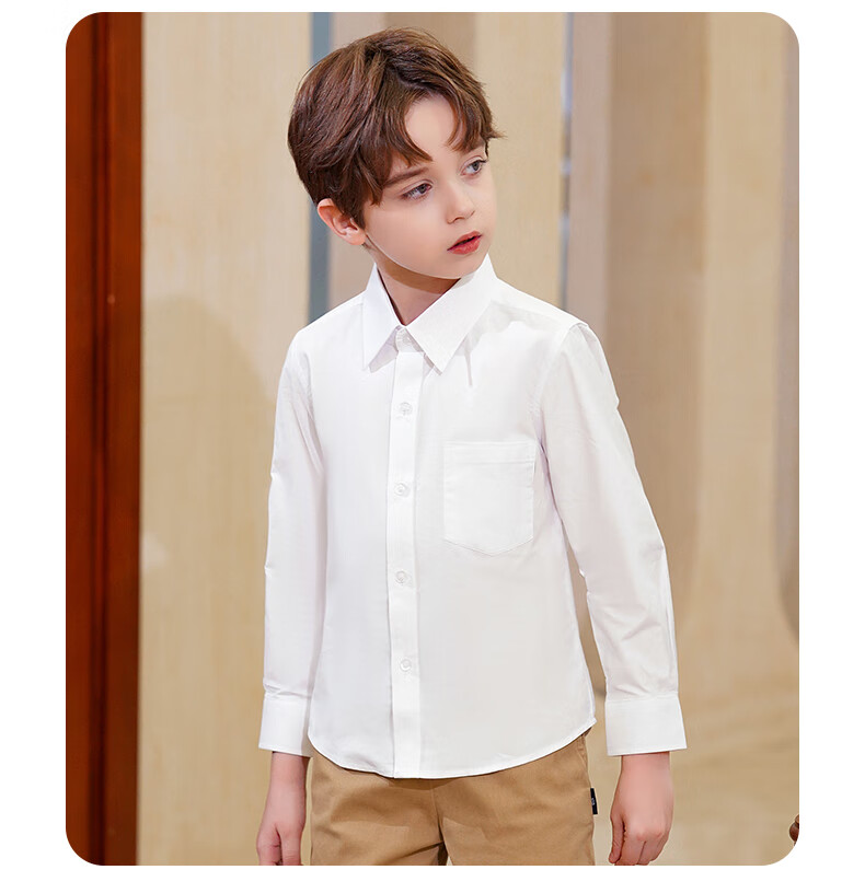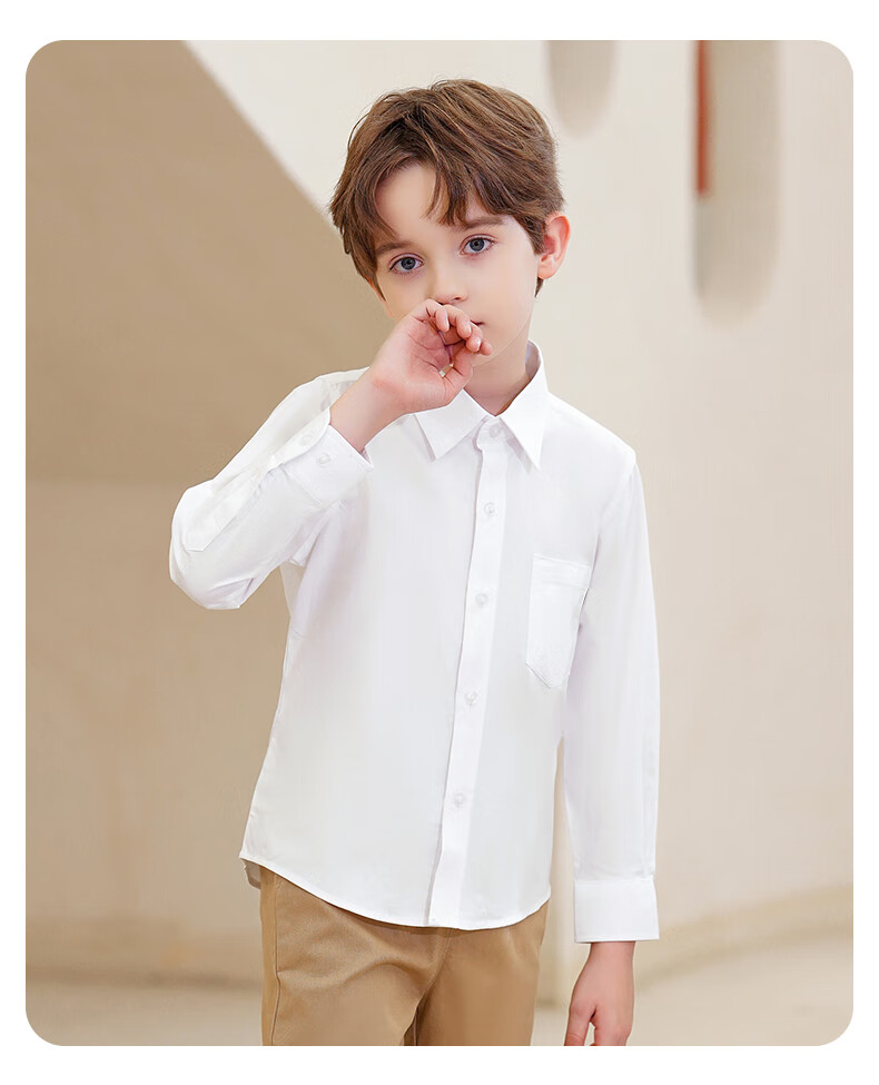 Romon white shirt boys and girls long-sleeved shirt children's spring and autumn shirt performance white long-sleeved shirt with pockets 120