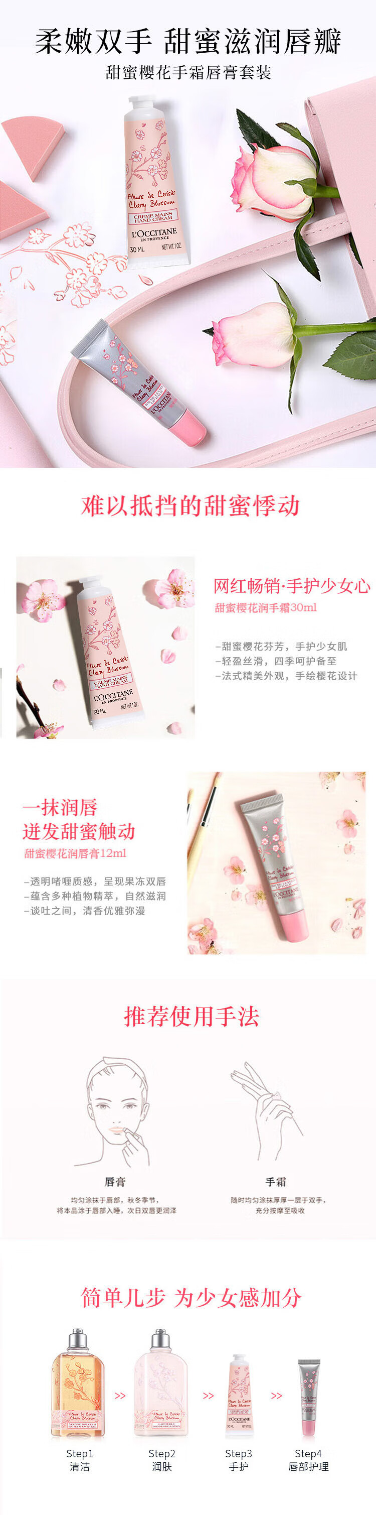 L'Occitane body care three-piece gift set cherry blossom hand cream lipstick soap moisturizing souvenir Christmas gift