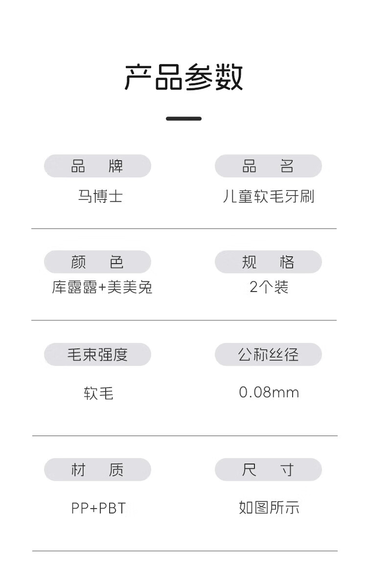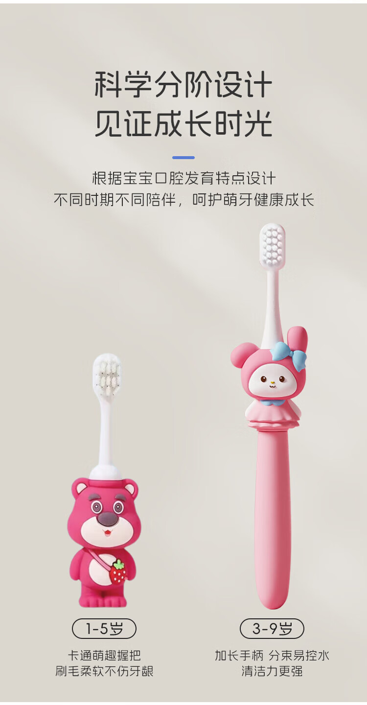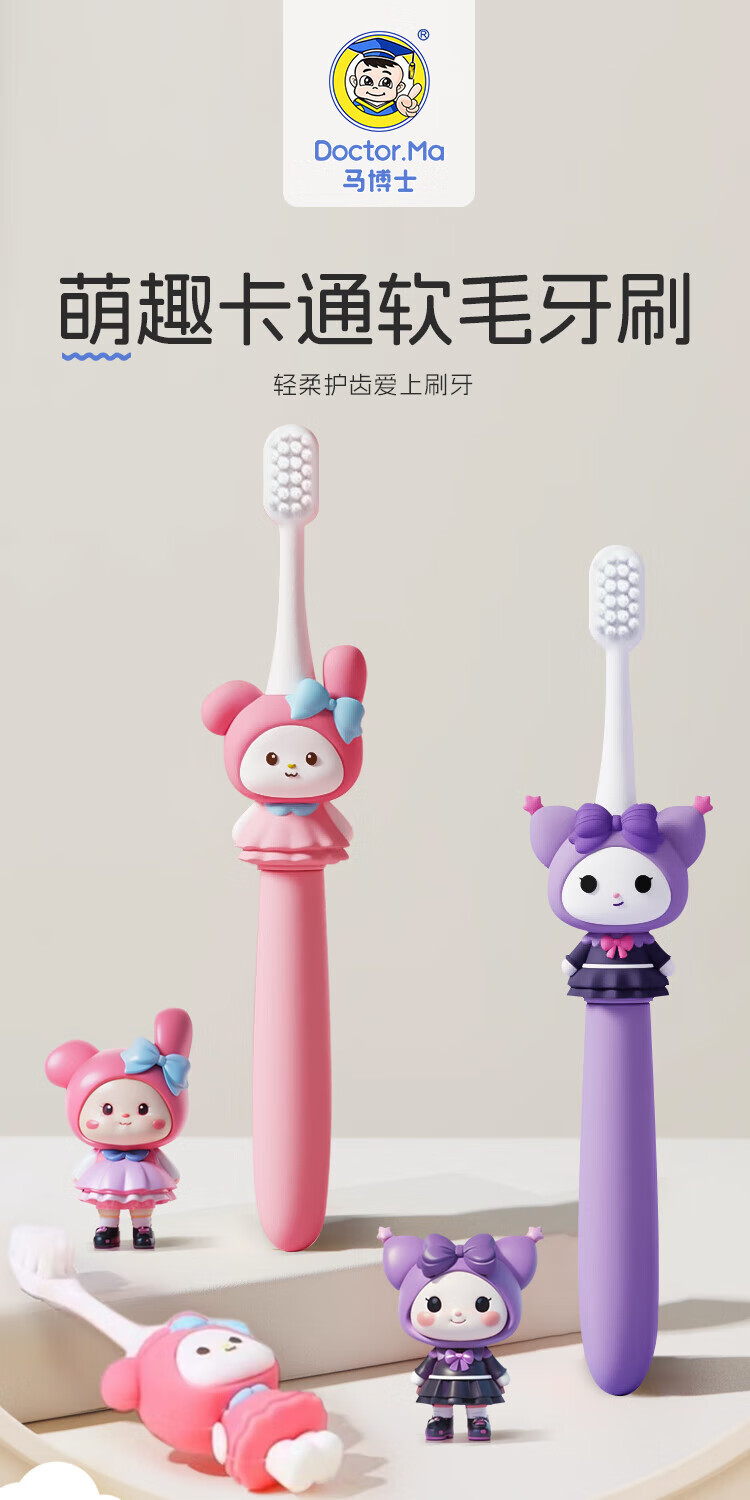 Dr. Ma Children's Toothbrush 3-6-9 Years Old Baby Soft-Bristled Toothbrush Baby Oral Cleansing 2 Pack Kululu+Meimeitu