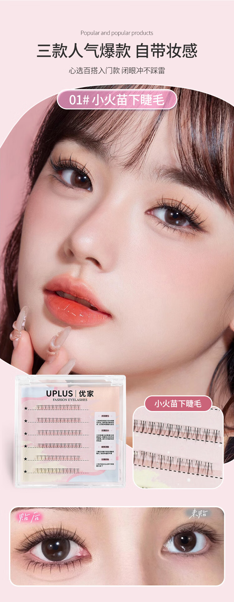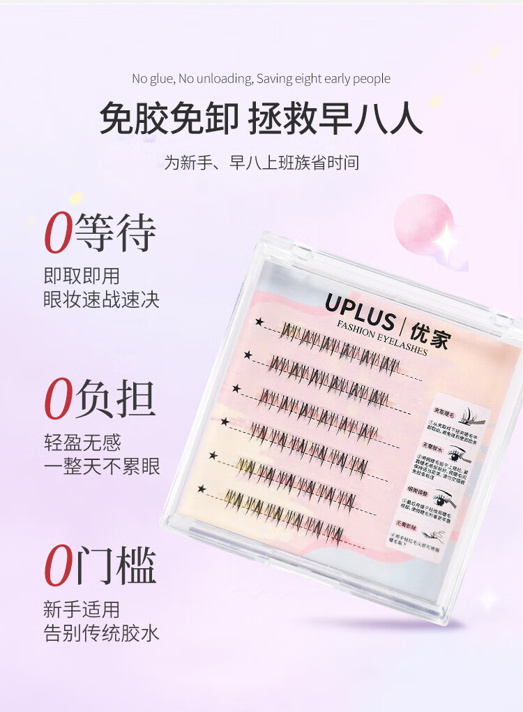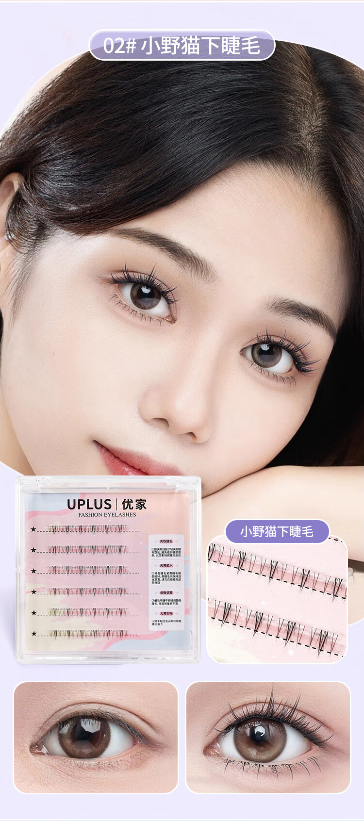 UPLUS glue-free little wild cat lower eyelashes lazy three-step natural cat false eyelashes self-adhesive single cluster eyelashes