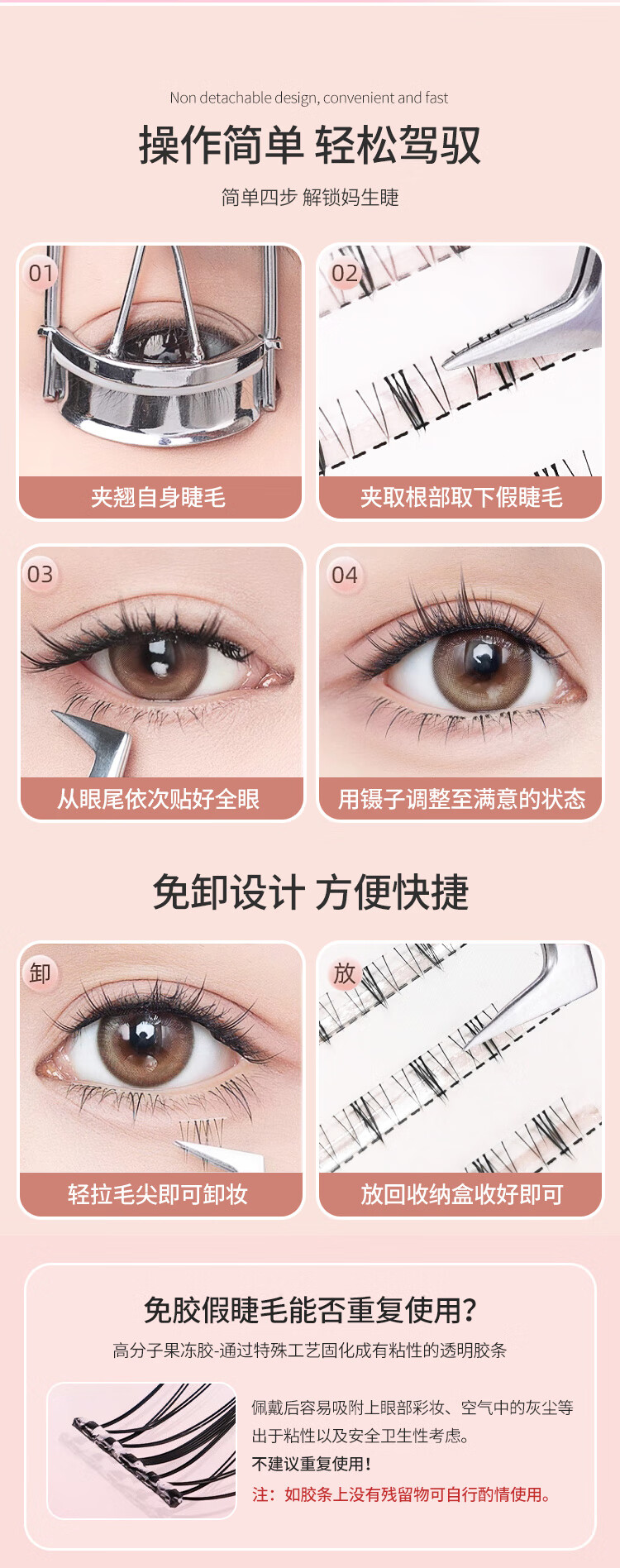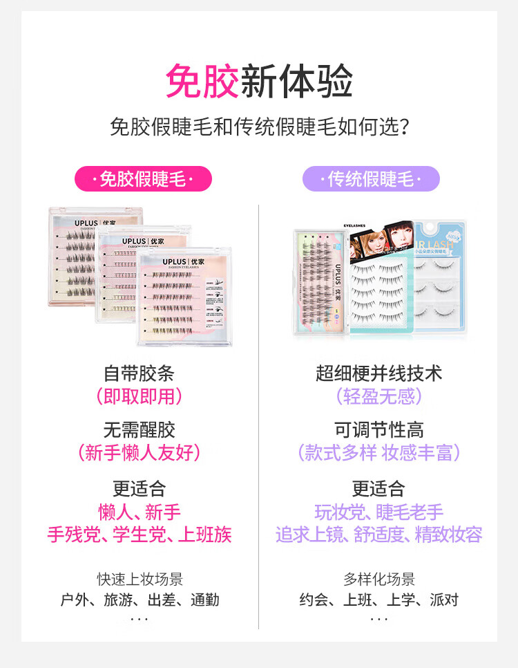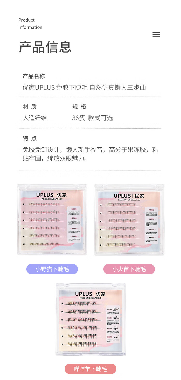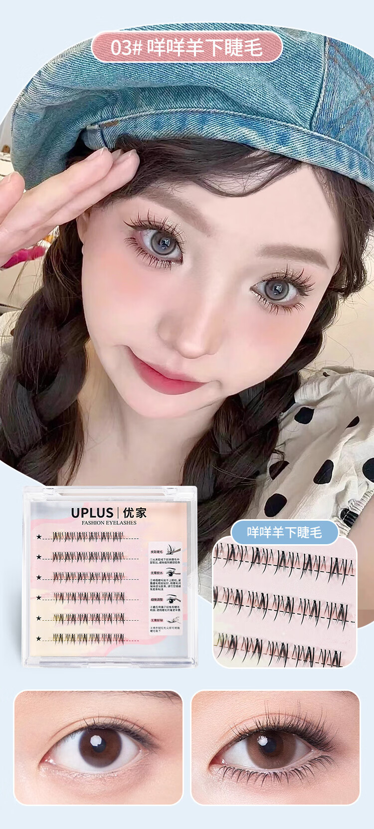 UPLUS glue-free little wild cat lower eyelashes lazy three-step natural cat false eyelashes self-adhesive single cluster eyelashes