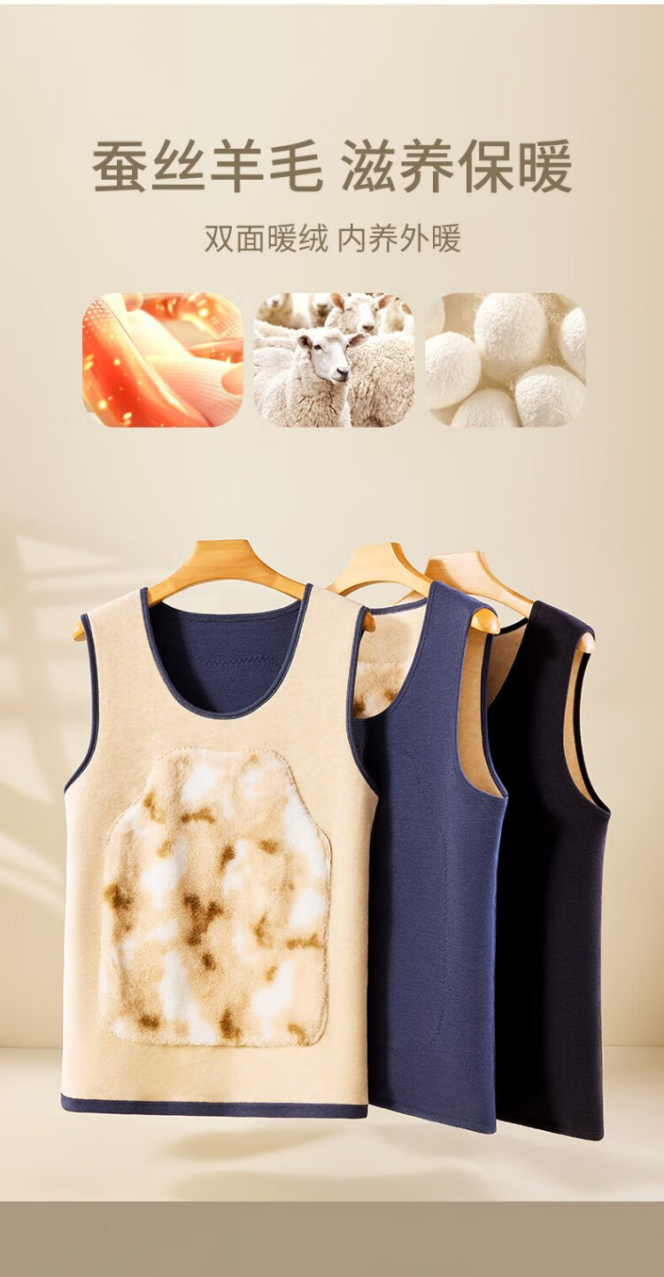 Yu Zhaolin thermal vest men's autumn and winter seamless wool silk plus velvet thickened German velvet waistcoat sleeveless vest base underwear