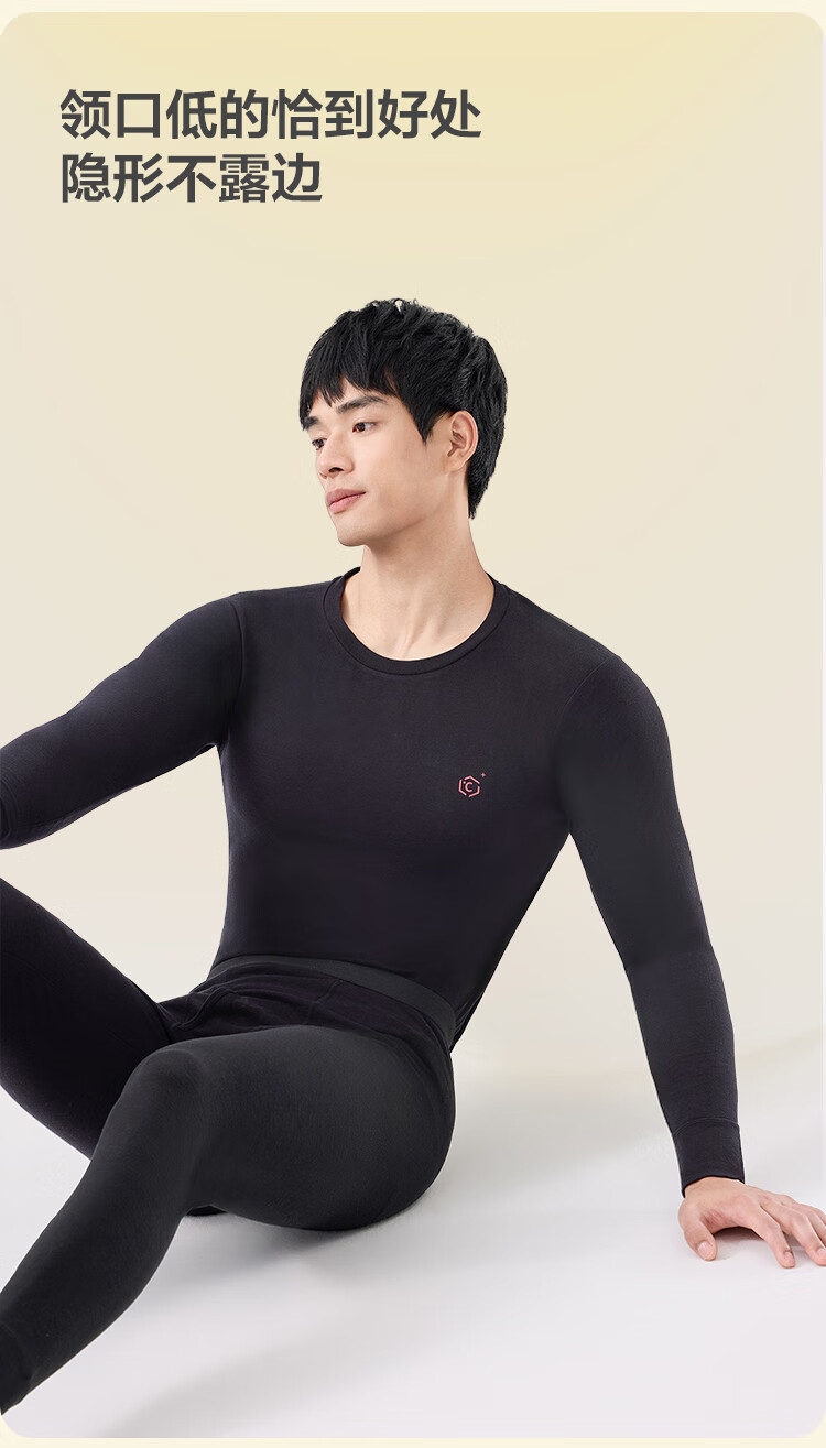 Jing Tokyo Made Men's Thermal Underwear Men's Autumn Clothes and Autumn Pants Set Coldproof Cotton Soft Bottoming Thermal Clothing Black Men L