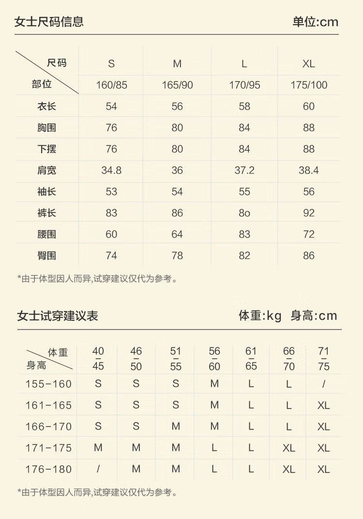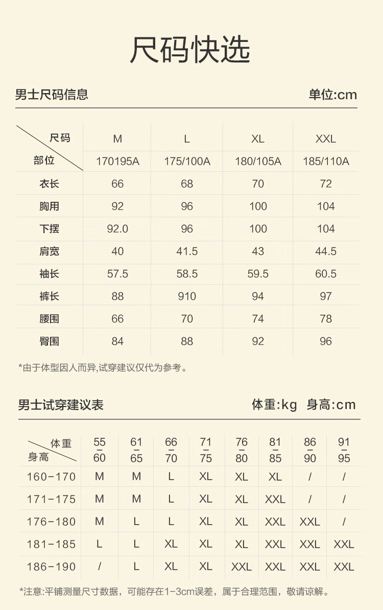 China (cm) 160-165/84-86 165-170 / 88-90 167-172 / 92-96 168-173 / 98-102 170-176 / 106-110
