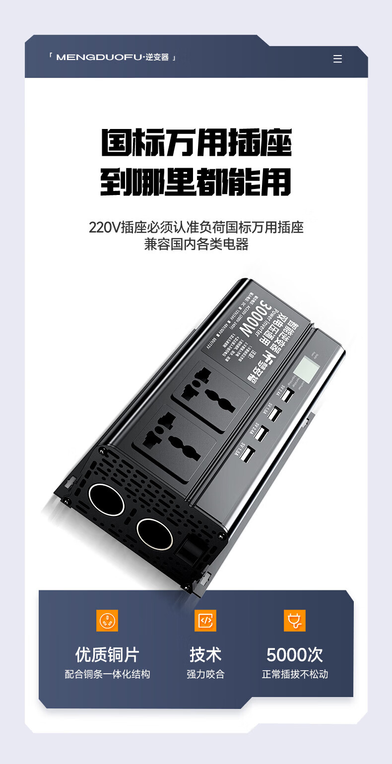 Mengduofu car inverter 48v60v to 220v multifunctional high-power car inverter power supply truck tricycle stall