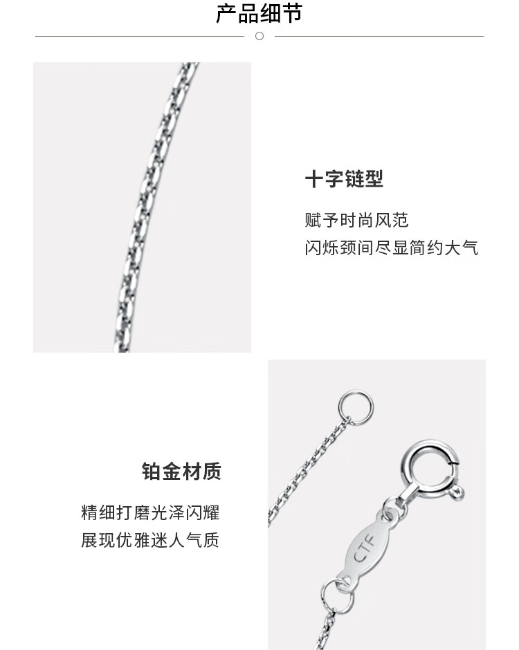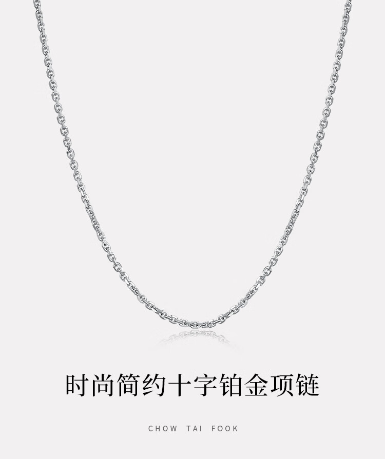 Chow Tai Fook Simple and Fashionable Cross Chain PT950 Platinum Necklace Plain Chain 40cm PT160771