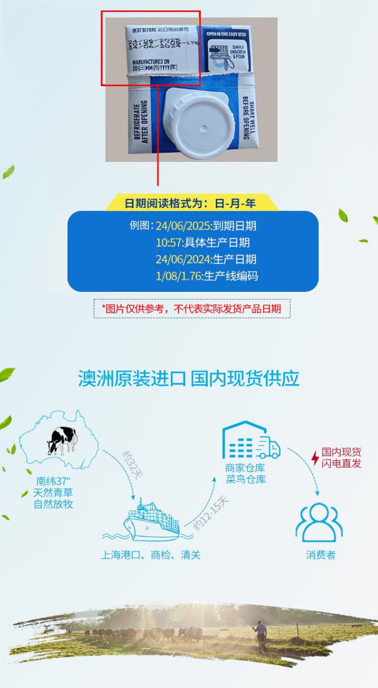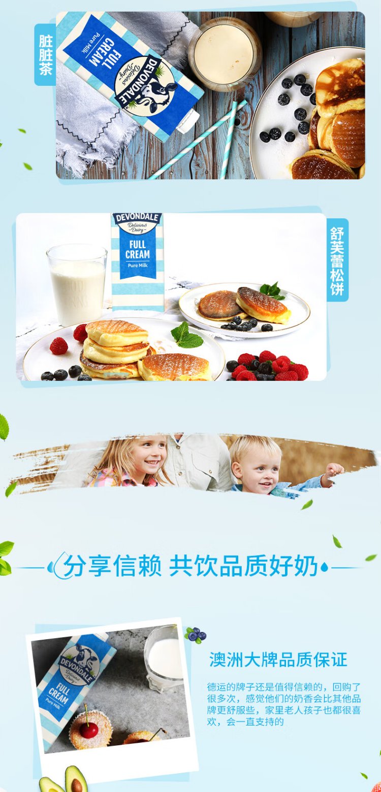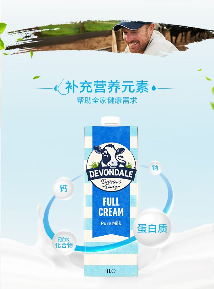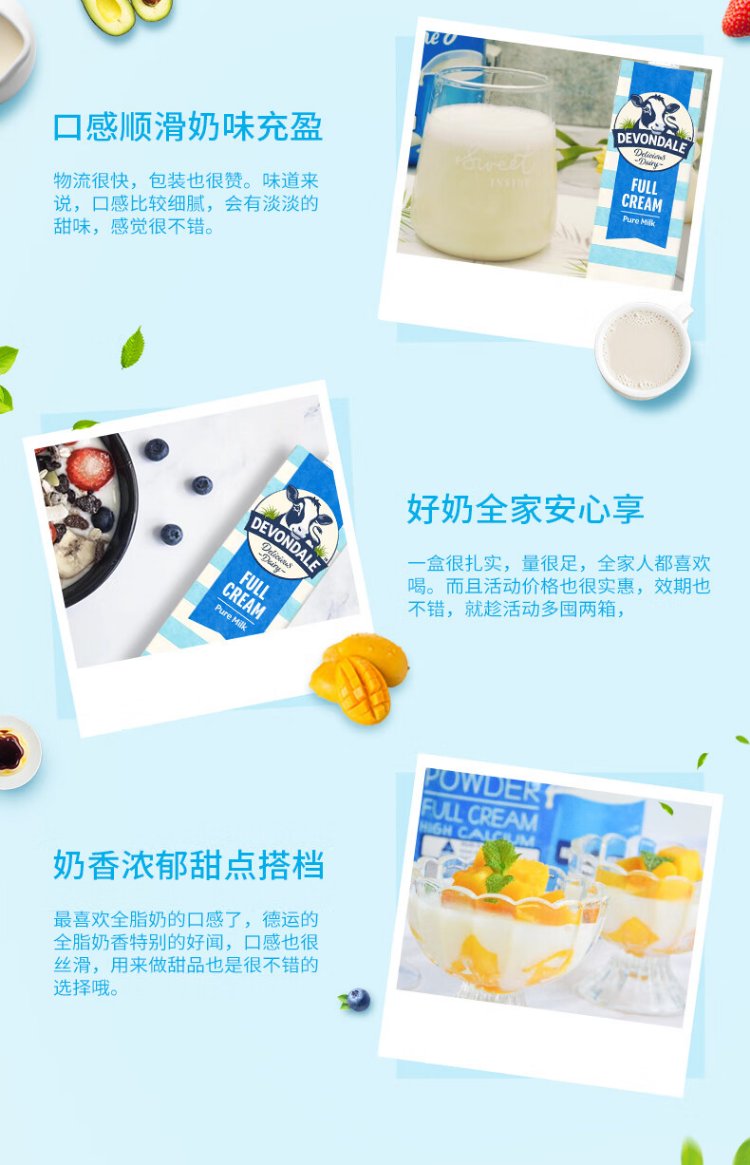 Devondale whole milk pure milk 1L*10 boxes, high calcium imported milk, minimum order of 10 boxes