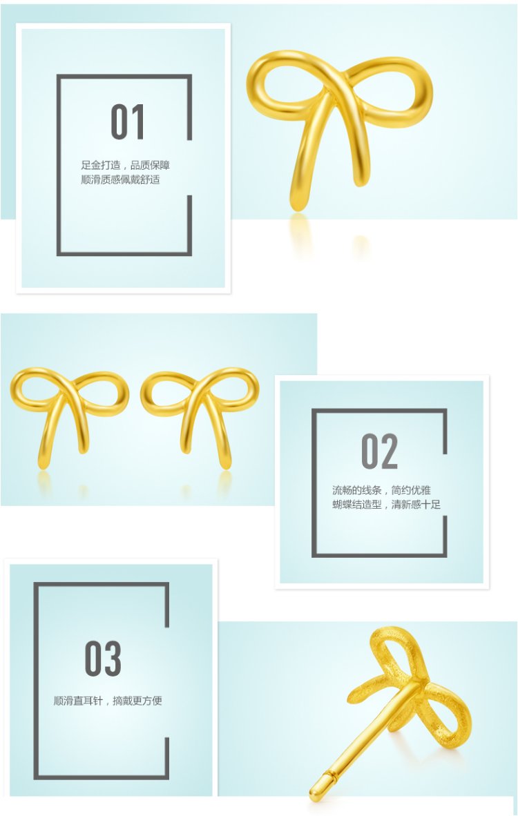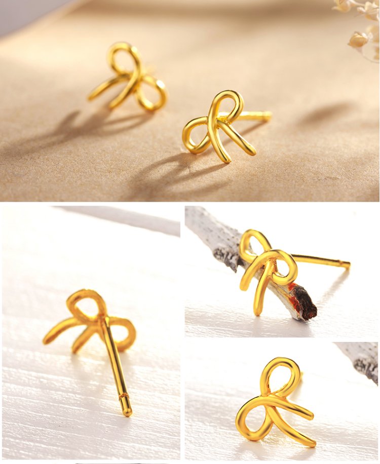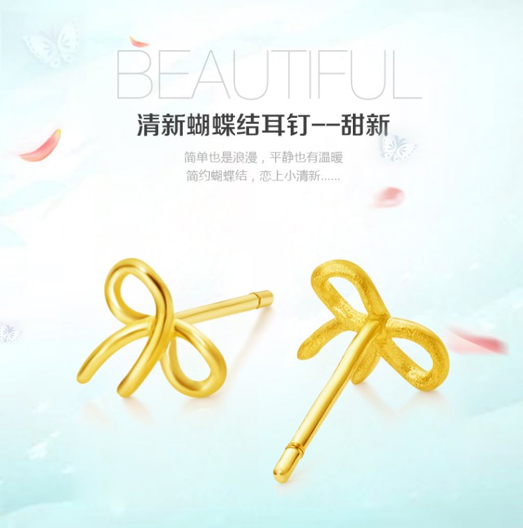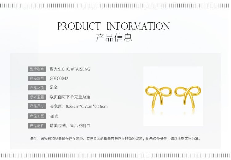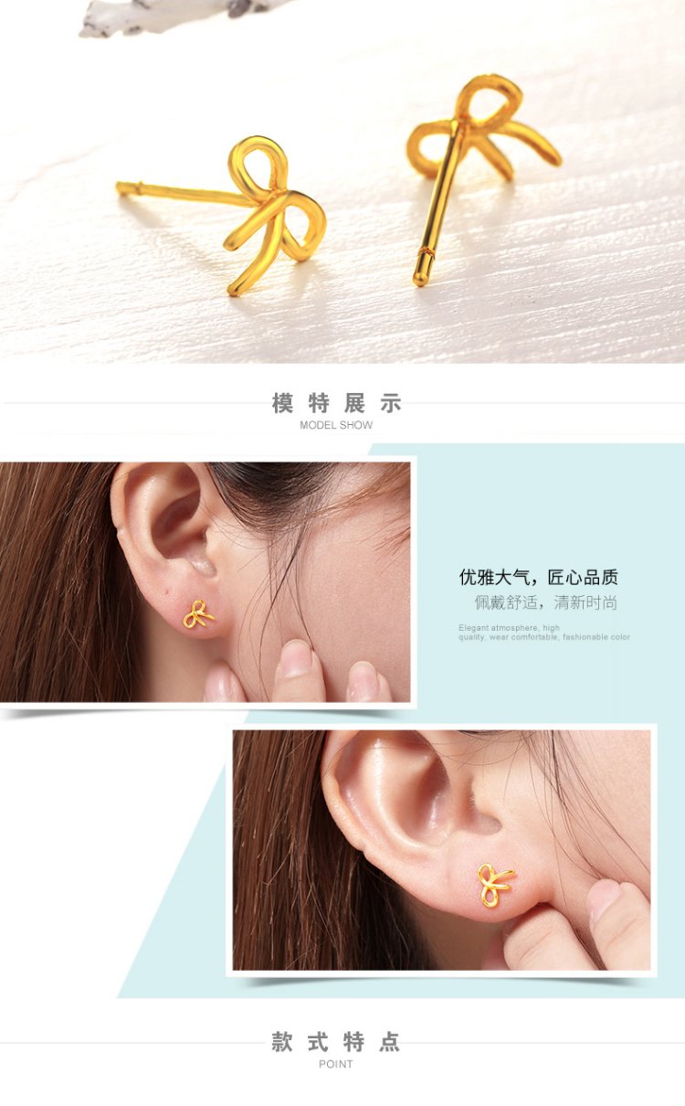 Chow Tai Sang Gold Earrings Women's Gold Bow Priced Earrings Birthday Gift for Girlfriend 1.18g