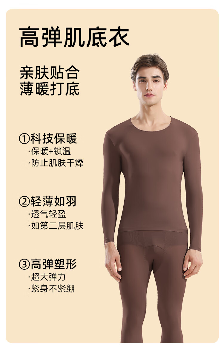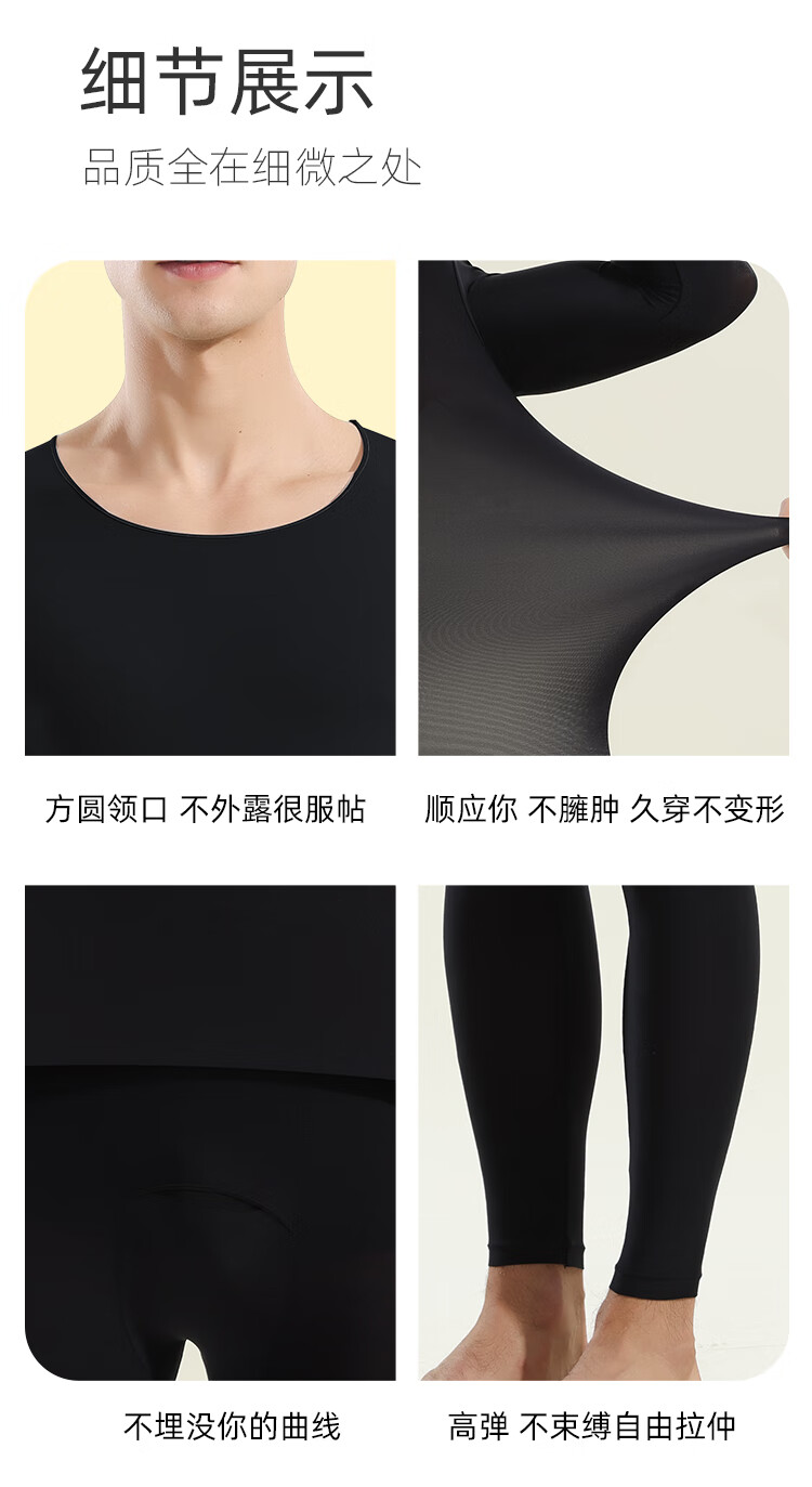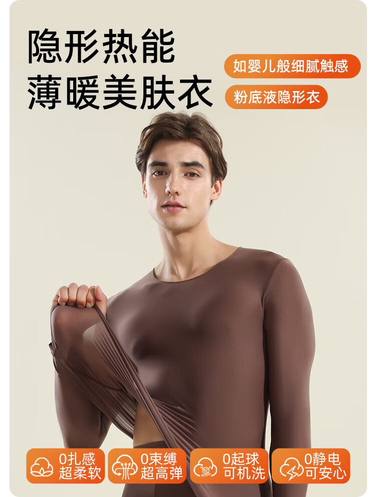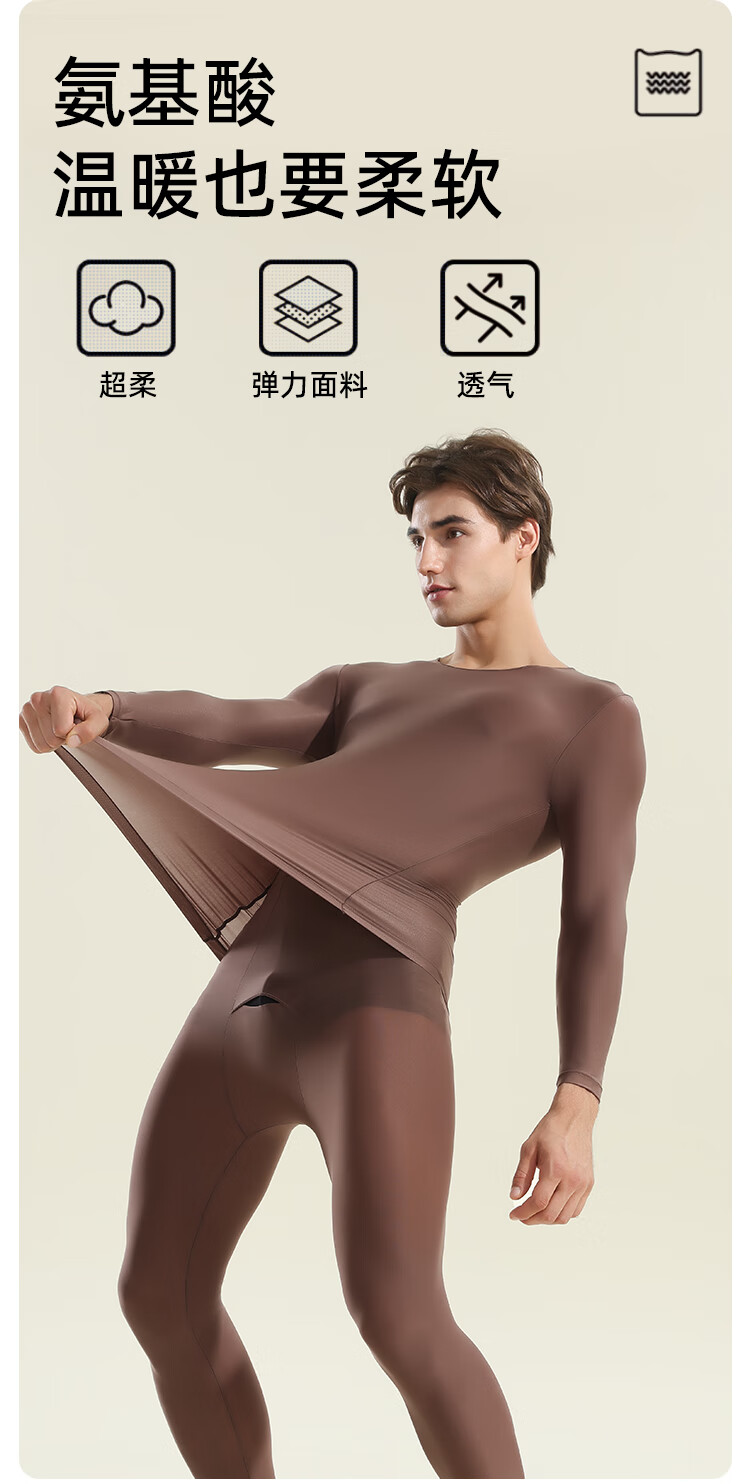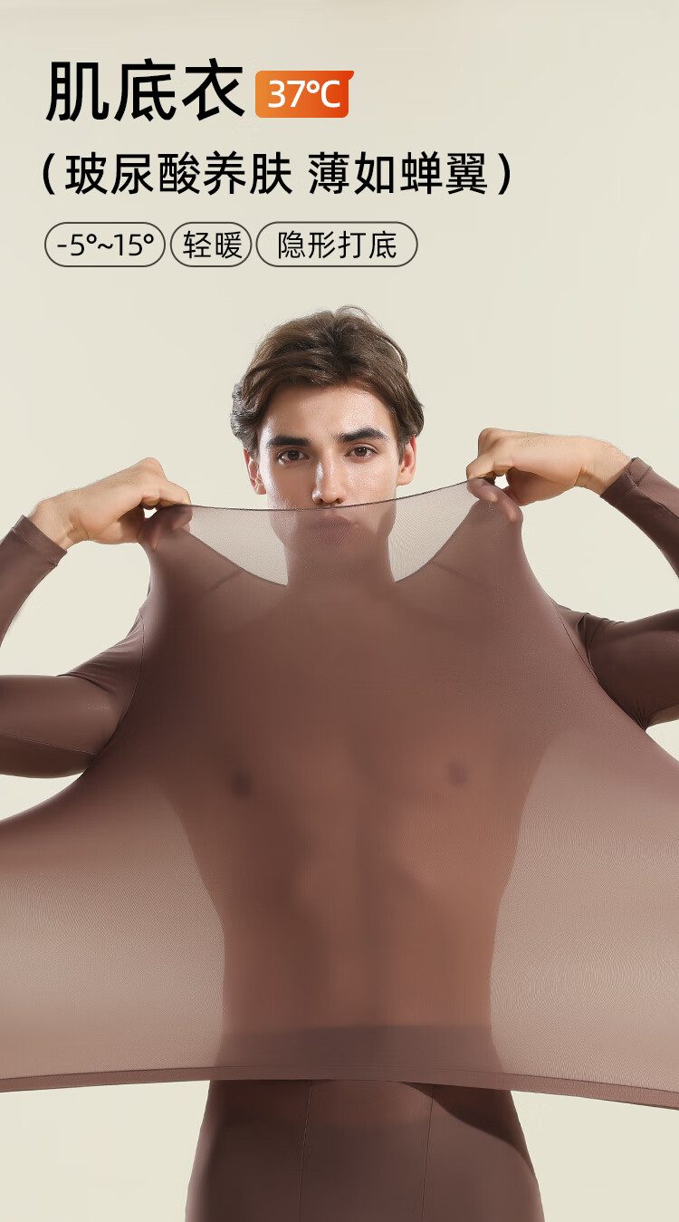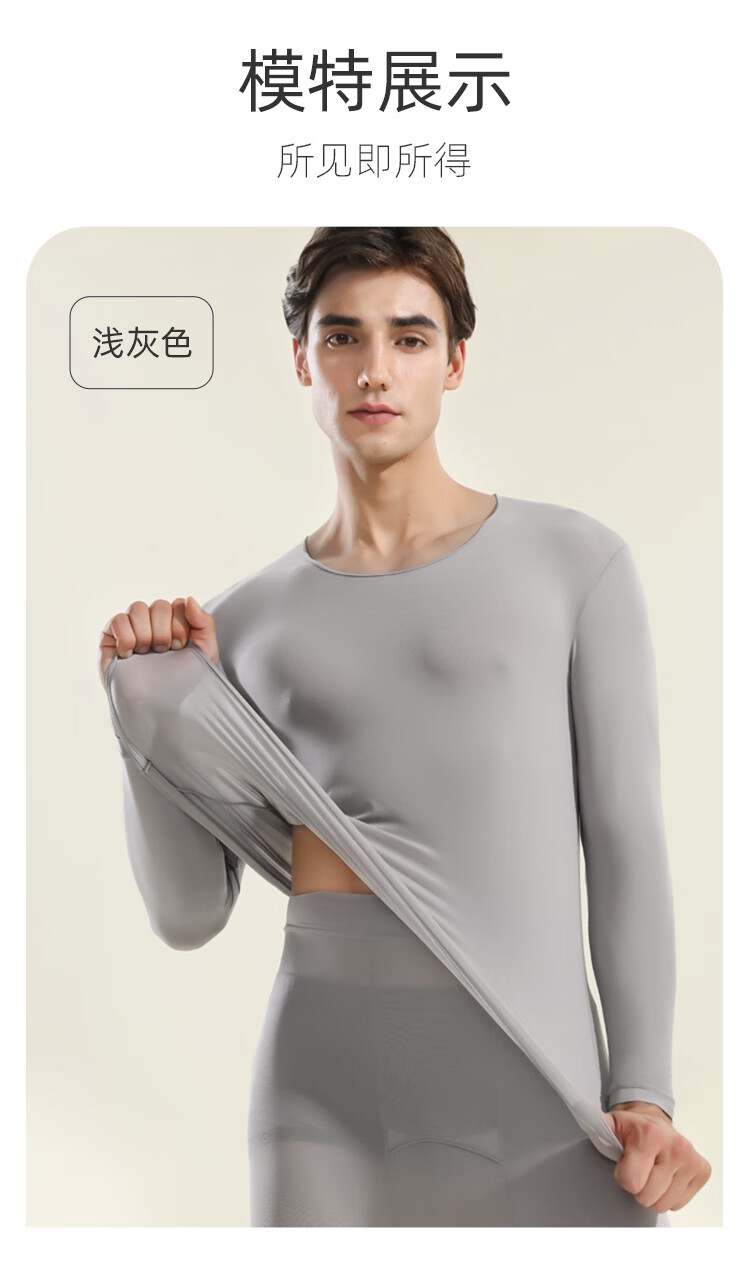 Maoren Technology Thermal Skin Beauty Clothing Men's Skin Base Clothes Hyaluronic Acid Ultra-Thin Autumn Clothes and Autumn Pants Constant Temperature Thermal Underwear Silver Gray