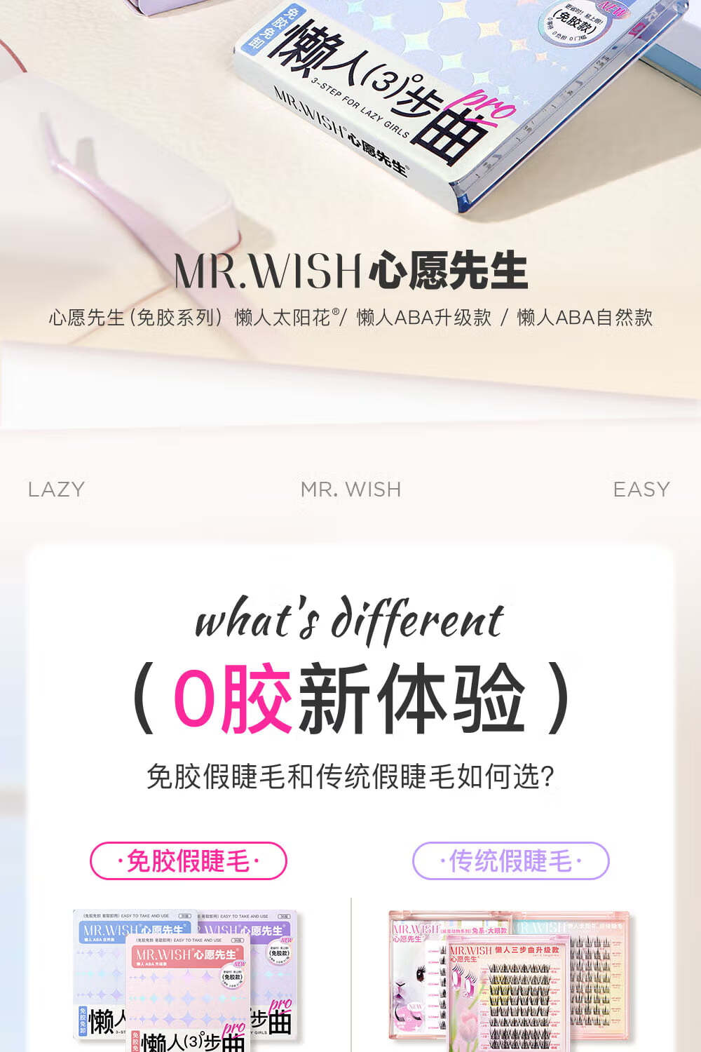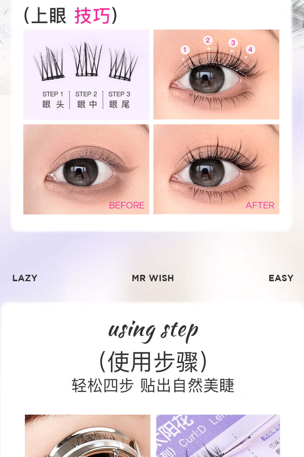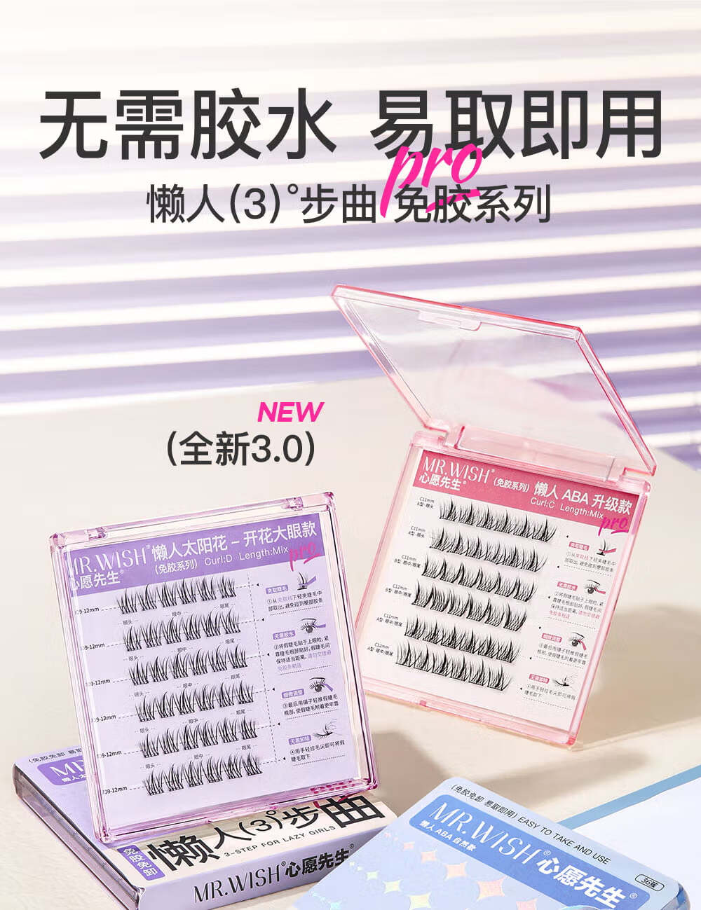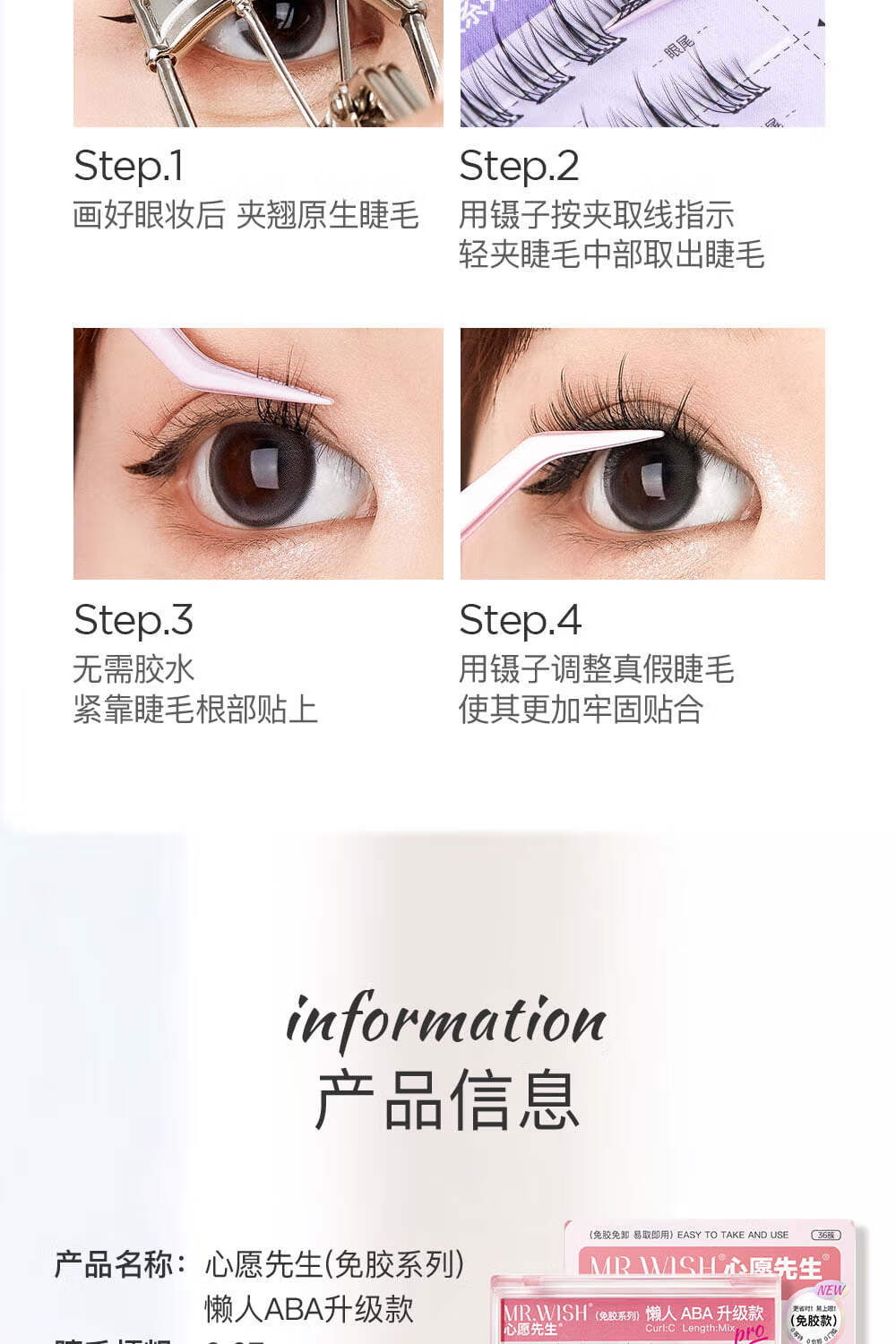 Mr. Wish Glue-free False Eyelashes Glue-free ABA Supernatural Lazy Trilogy Segmented Novice 36 Clusters Self-operated Gifts