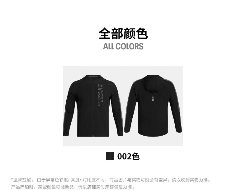 UNDERARMOR Autumn and Winter Out The Storm Men's Running Sports Jacket 1377486 Black 002 L