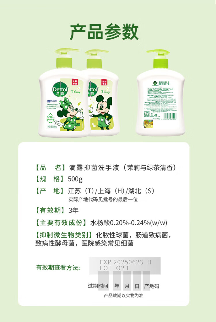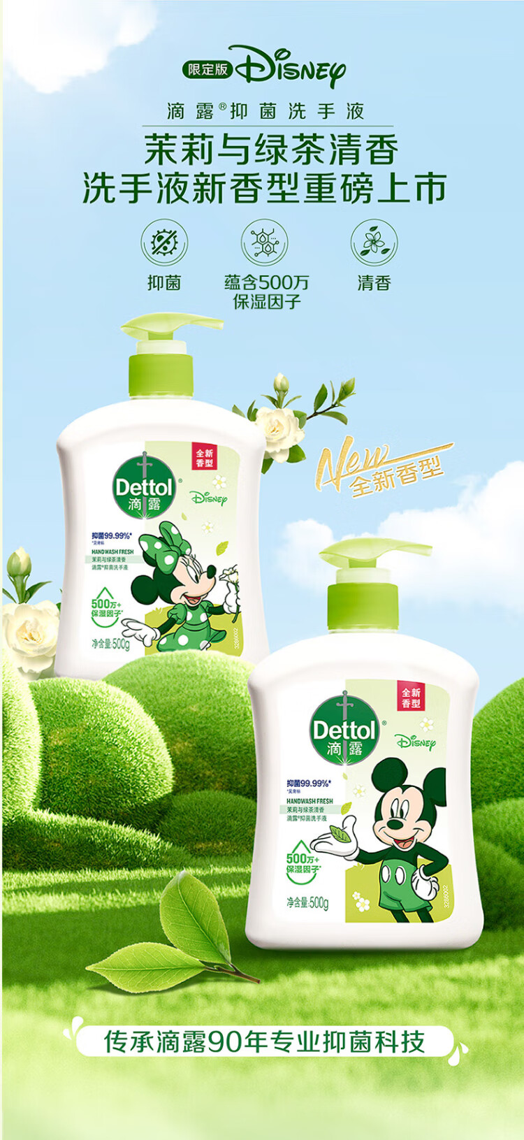 Dettol Hand Sanitizer Jasmine Green Tea Fragrance 500g*2 Children's Hand Sanitizer Home Antibacterial Disinfection Disney